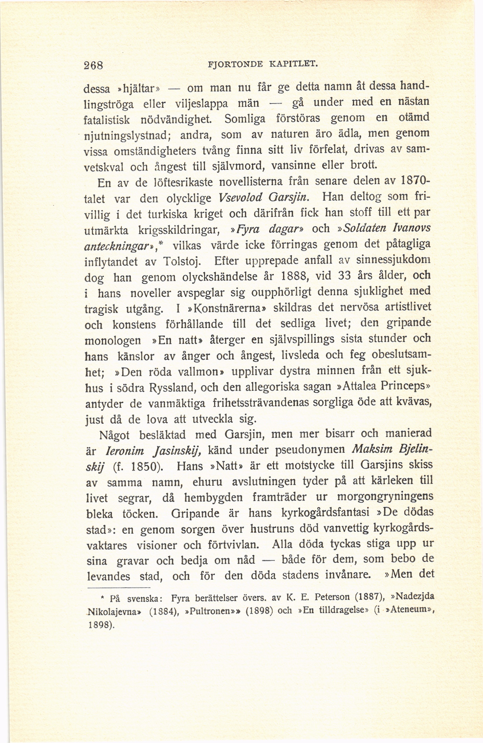 Nikolajevna» (1884), »Pultronen»» (1898) och »En tilldragelse» (i »Ateneum»,