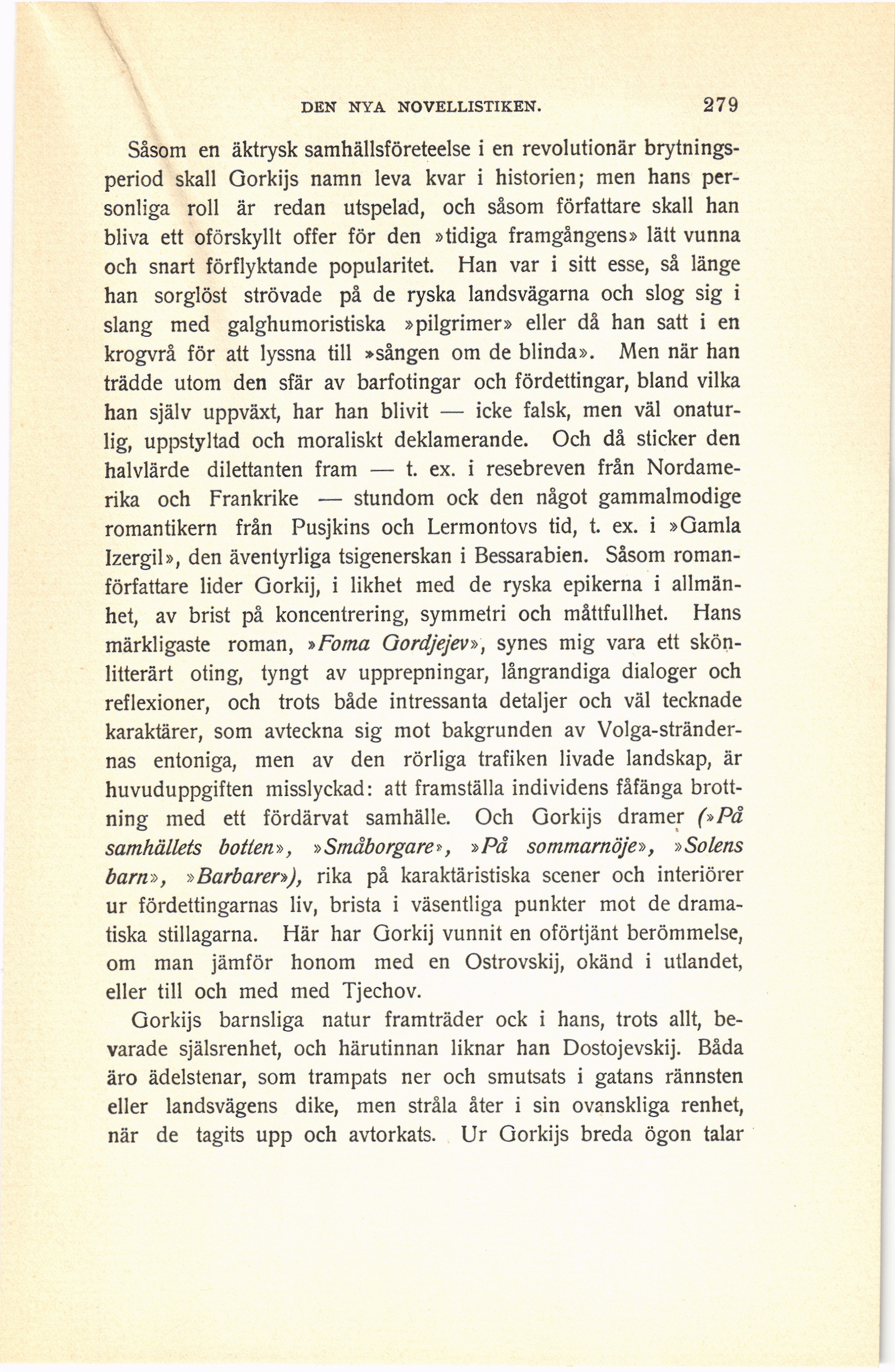 brytningsperiod skall Gorkijs namn leva kvar i historien; men hans