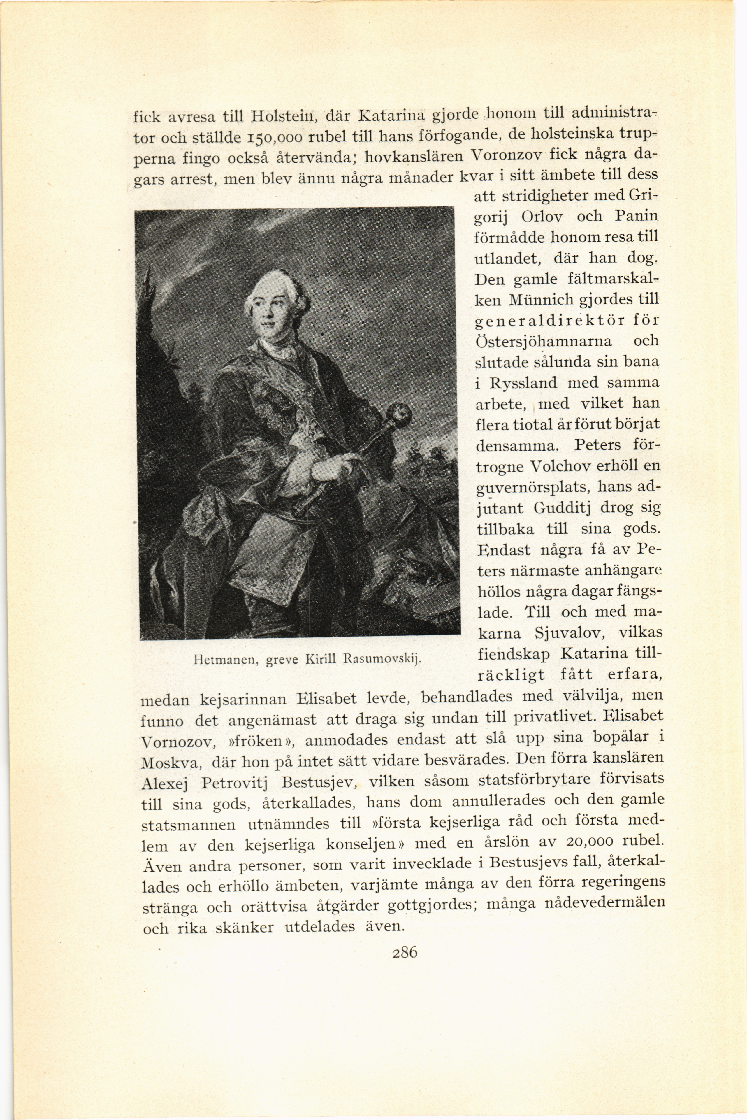 Hetmanen, greve Kirill Rasumovskij.