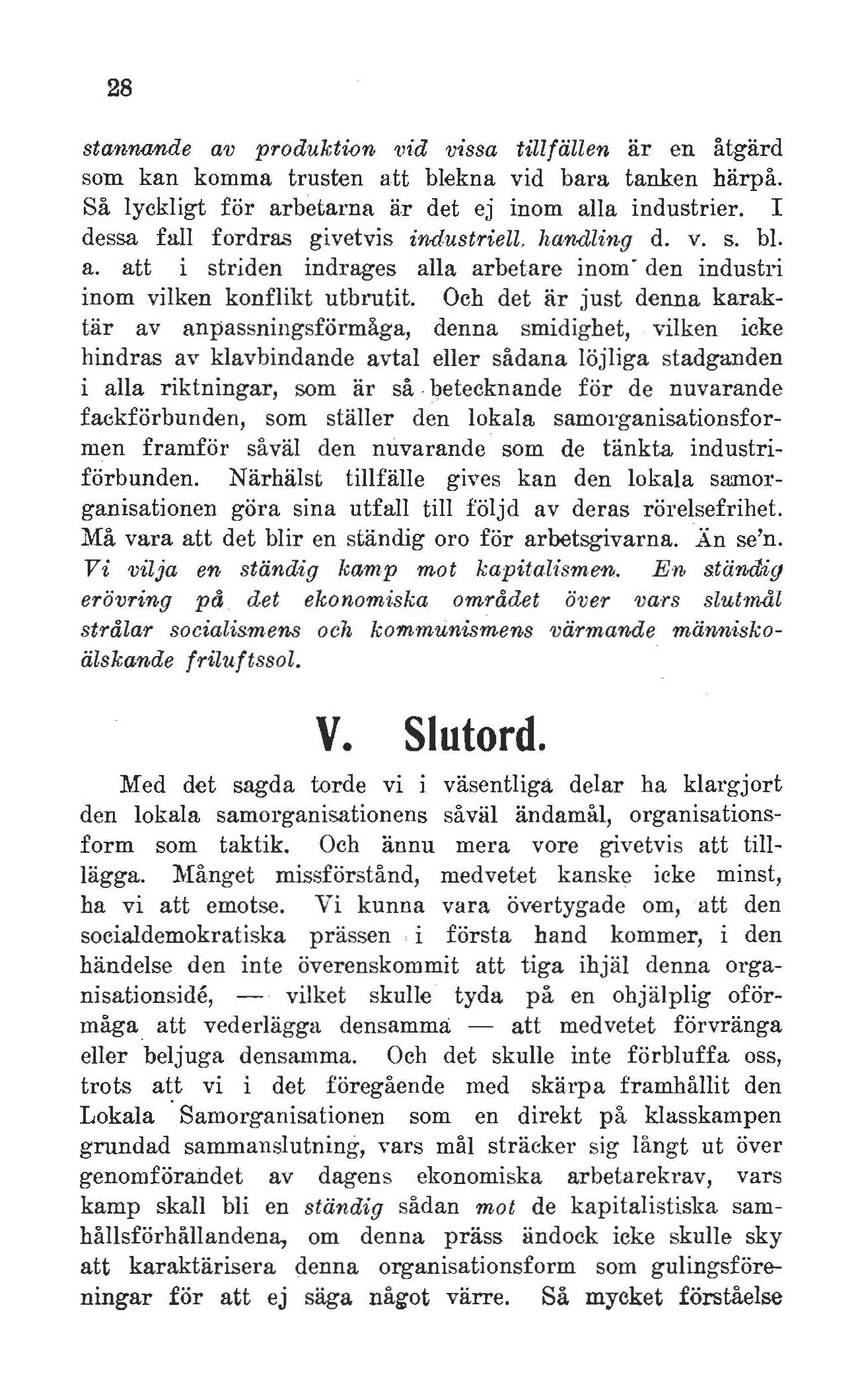Vi vilja en ständig kamp mot kapitalismen. En ständig