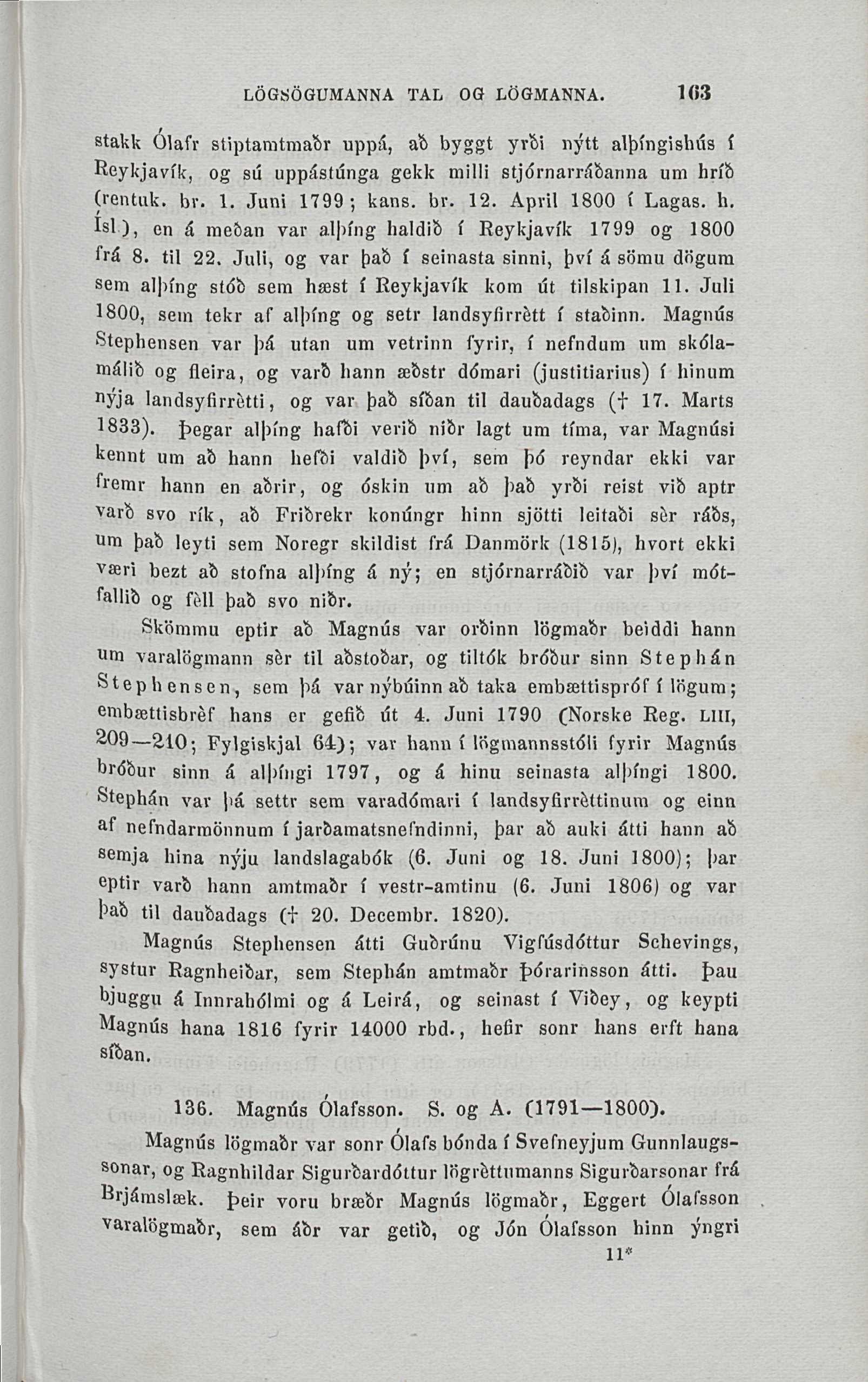 1833). þegar alþíng haf&i veri& ni&r lagt um tíma, var Magnúsi