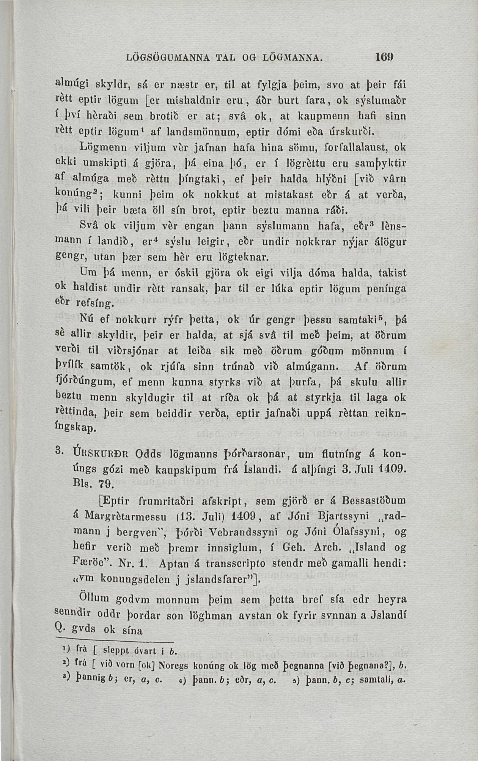 3. UhskdrÐr Odds lögmanns f><5rðarsonar, um flutníng á