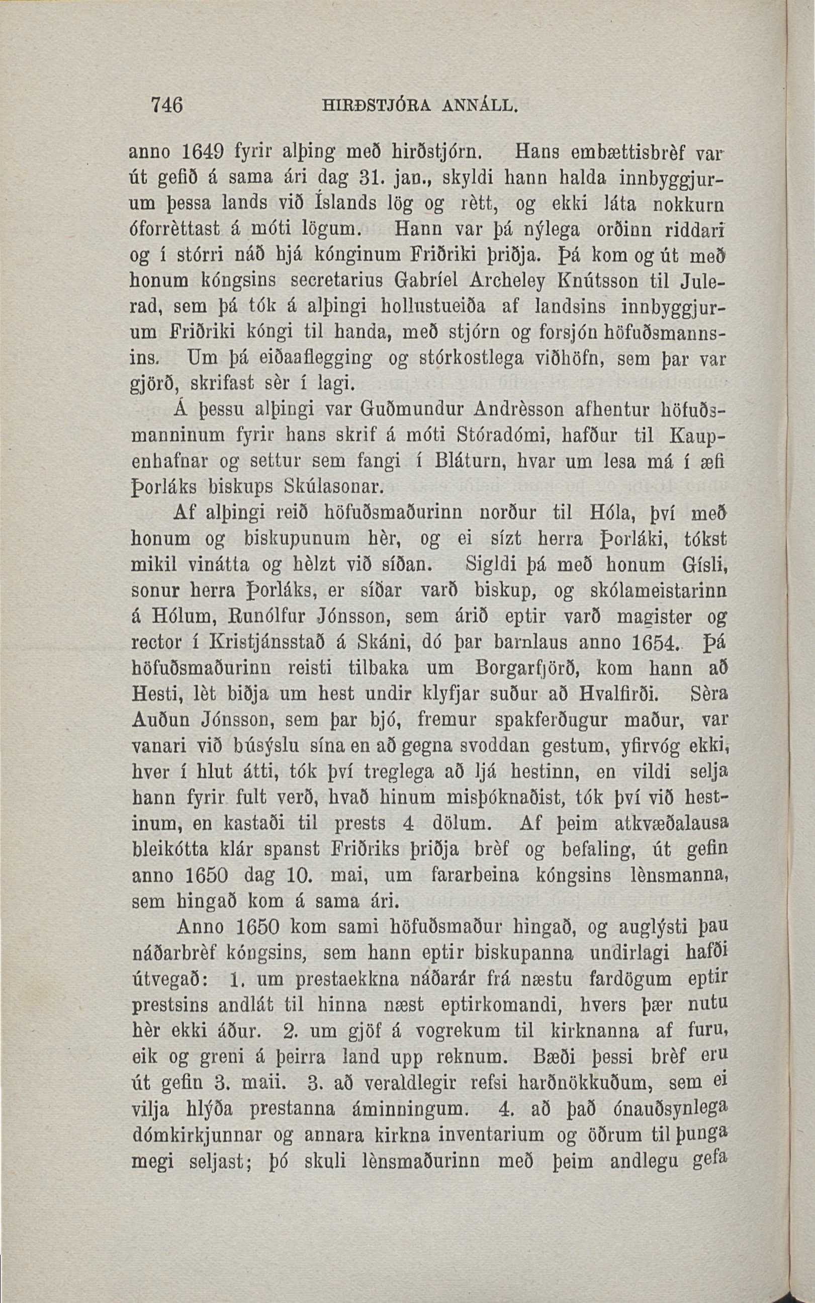 anno 1649 fyrir alþing með hirð3tjórn. Hans embættisbréf var