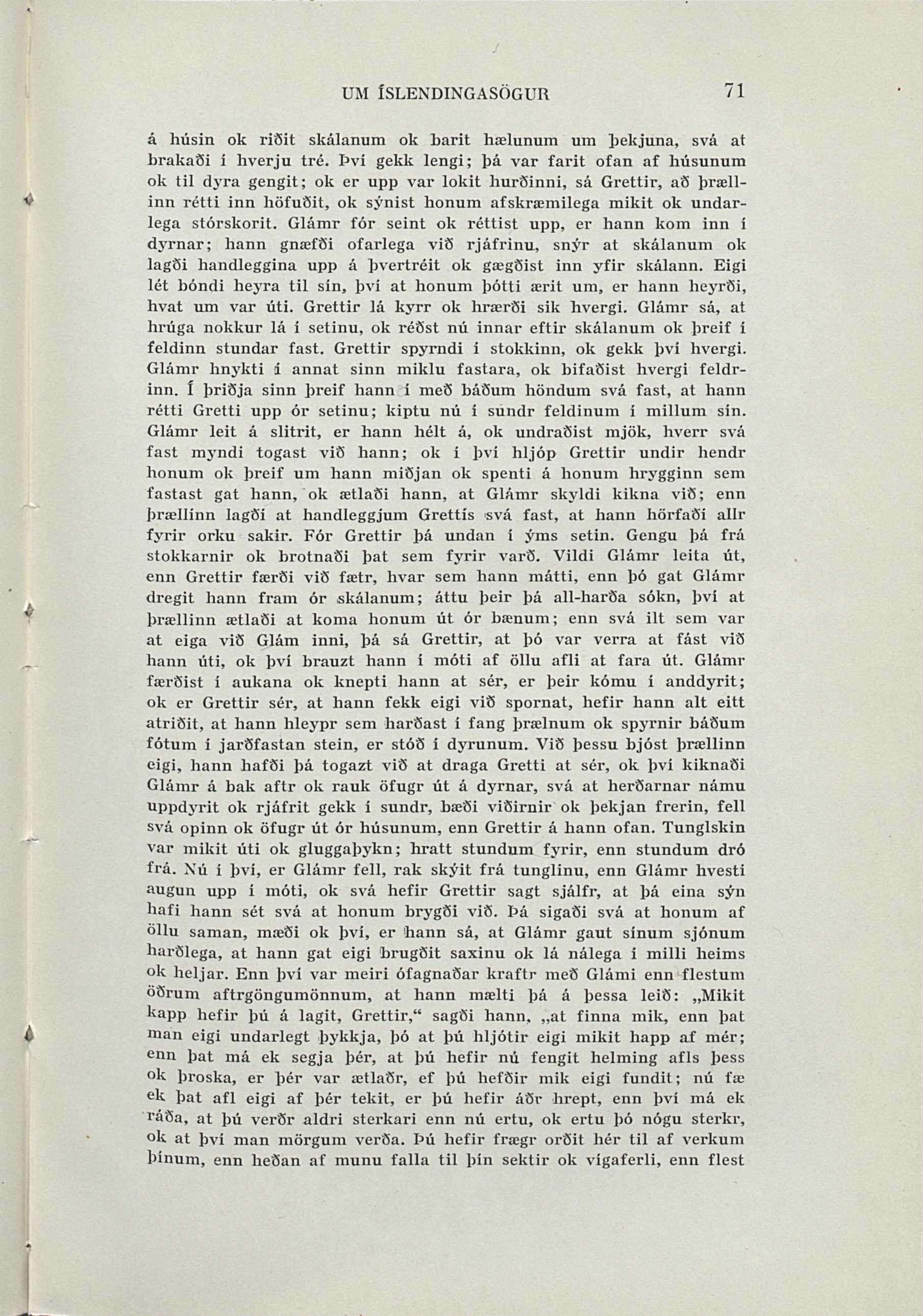 undar-lega stórskorit. Glámr fór seint ok réttist upp, er hann kom inn í