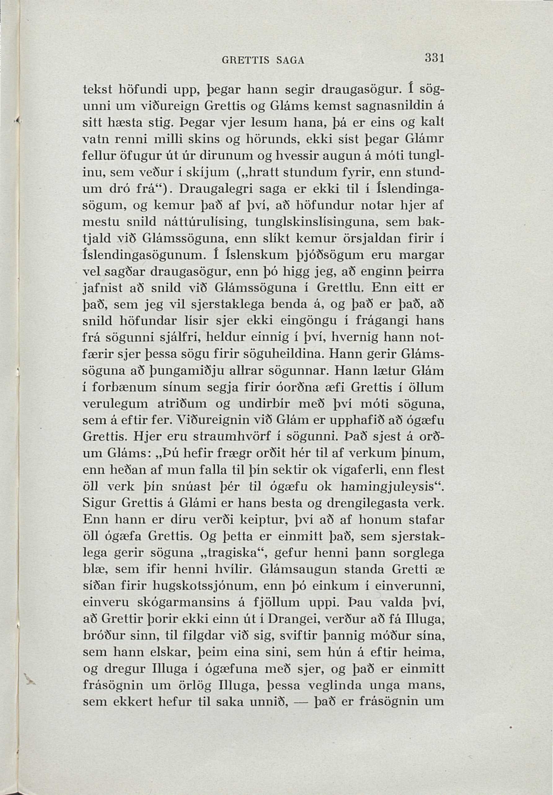 Sigur Grettis á Glámi er hans besta og drengilegasta verk.