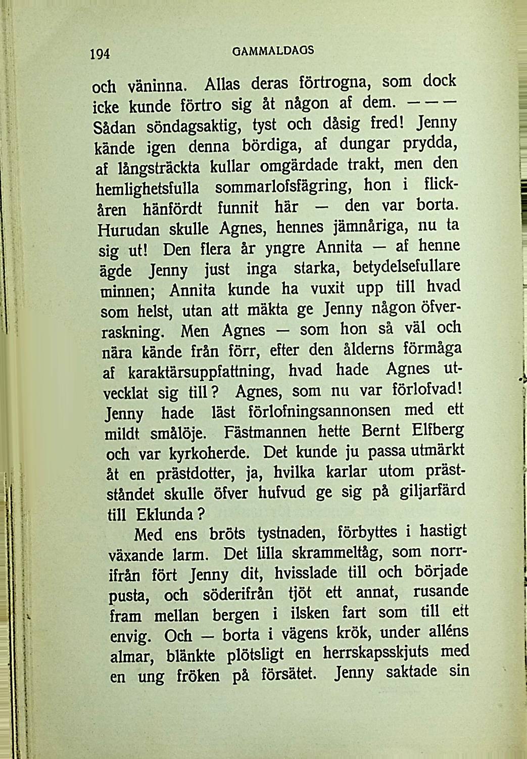 utvecklat sig till? Agnes, som nu var förlofvad!