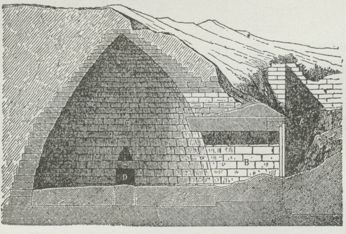 nær Athen findes en udgravet K., 9 m høj, og
