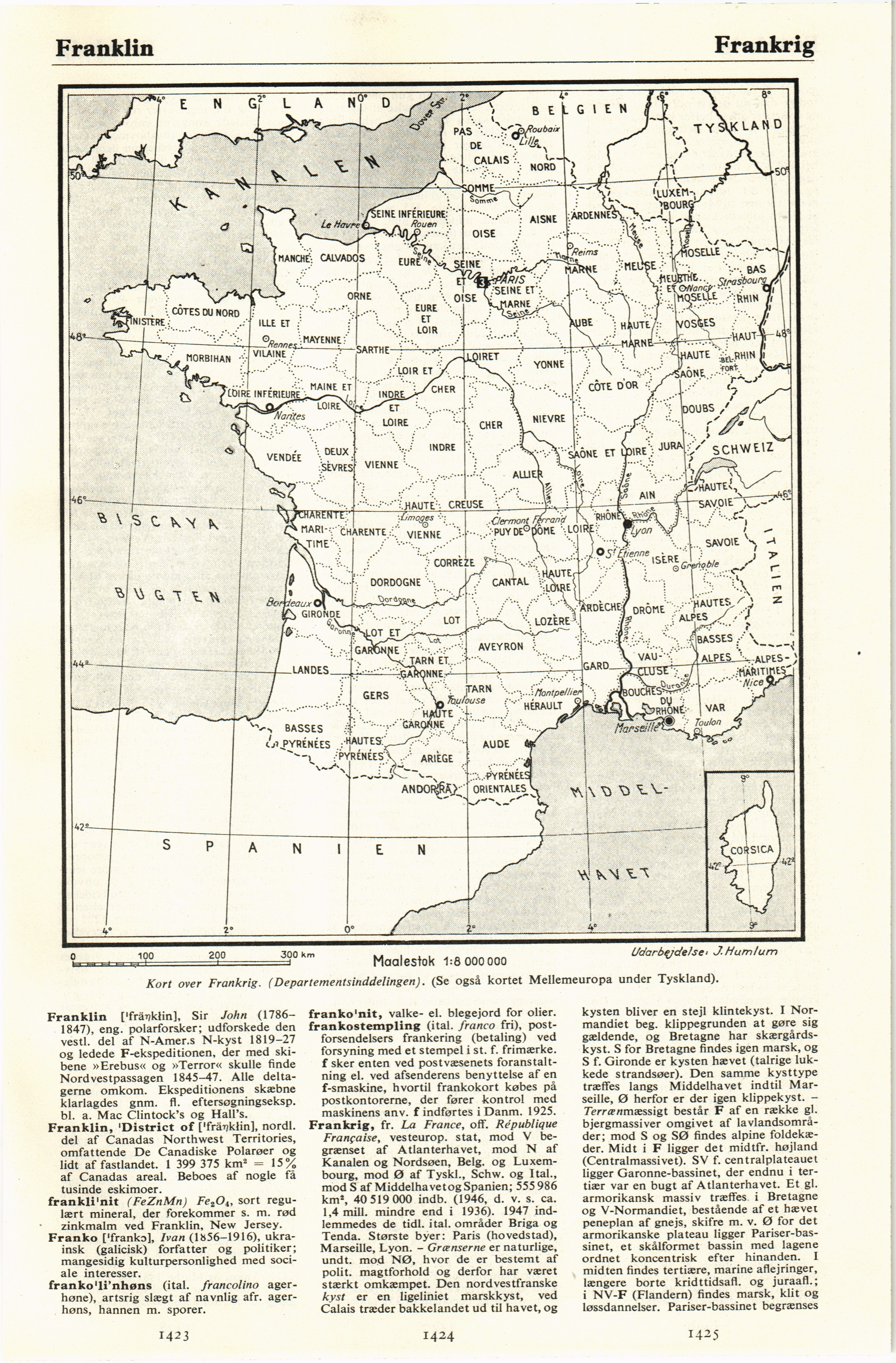 Kort over Frankrig. (De parterne ntsinddelingen). (Se også kortet Mellemeuropa under Tyskland).