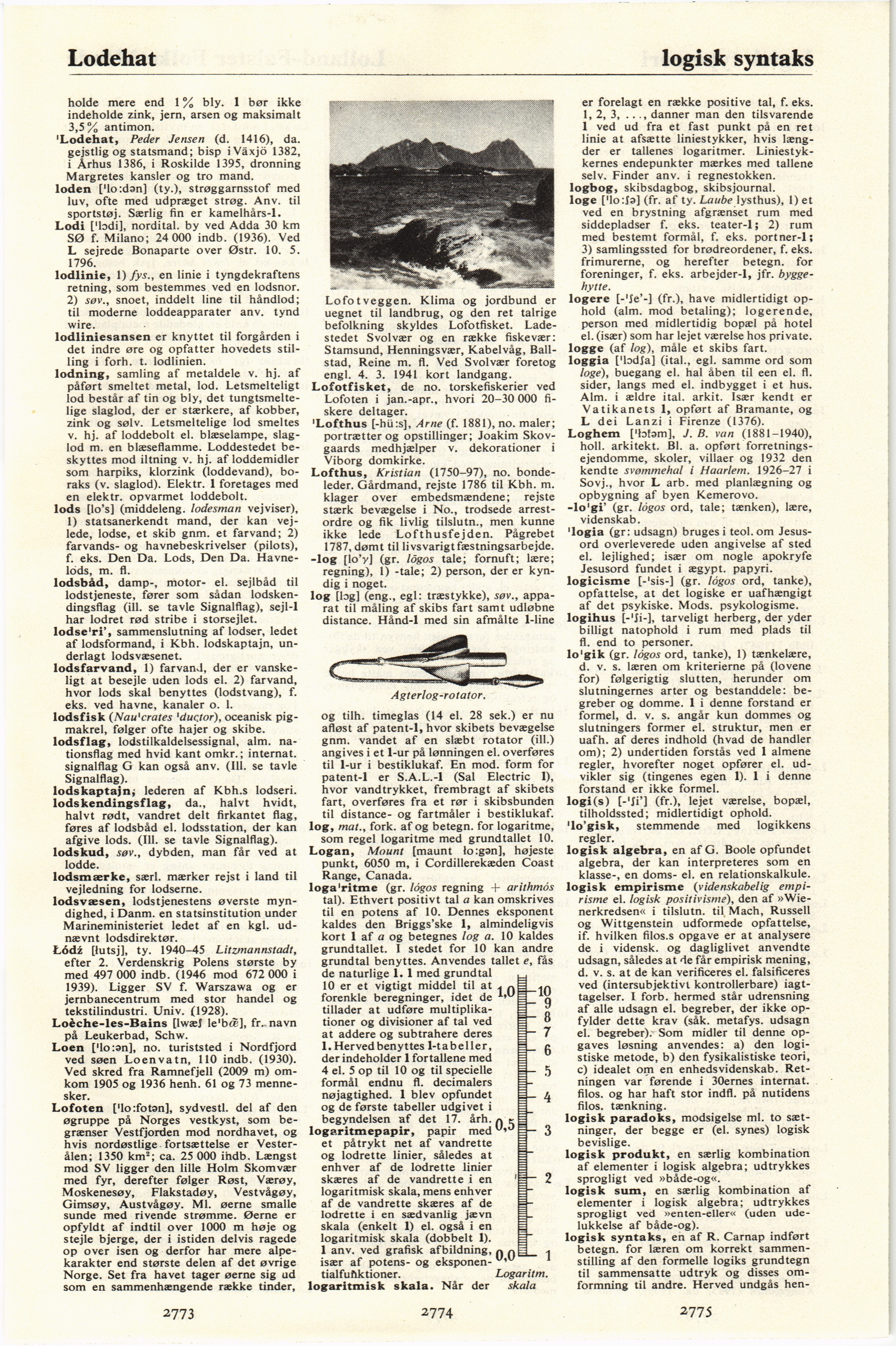 logge (af log), måle et skibs fart.