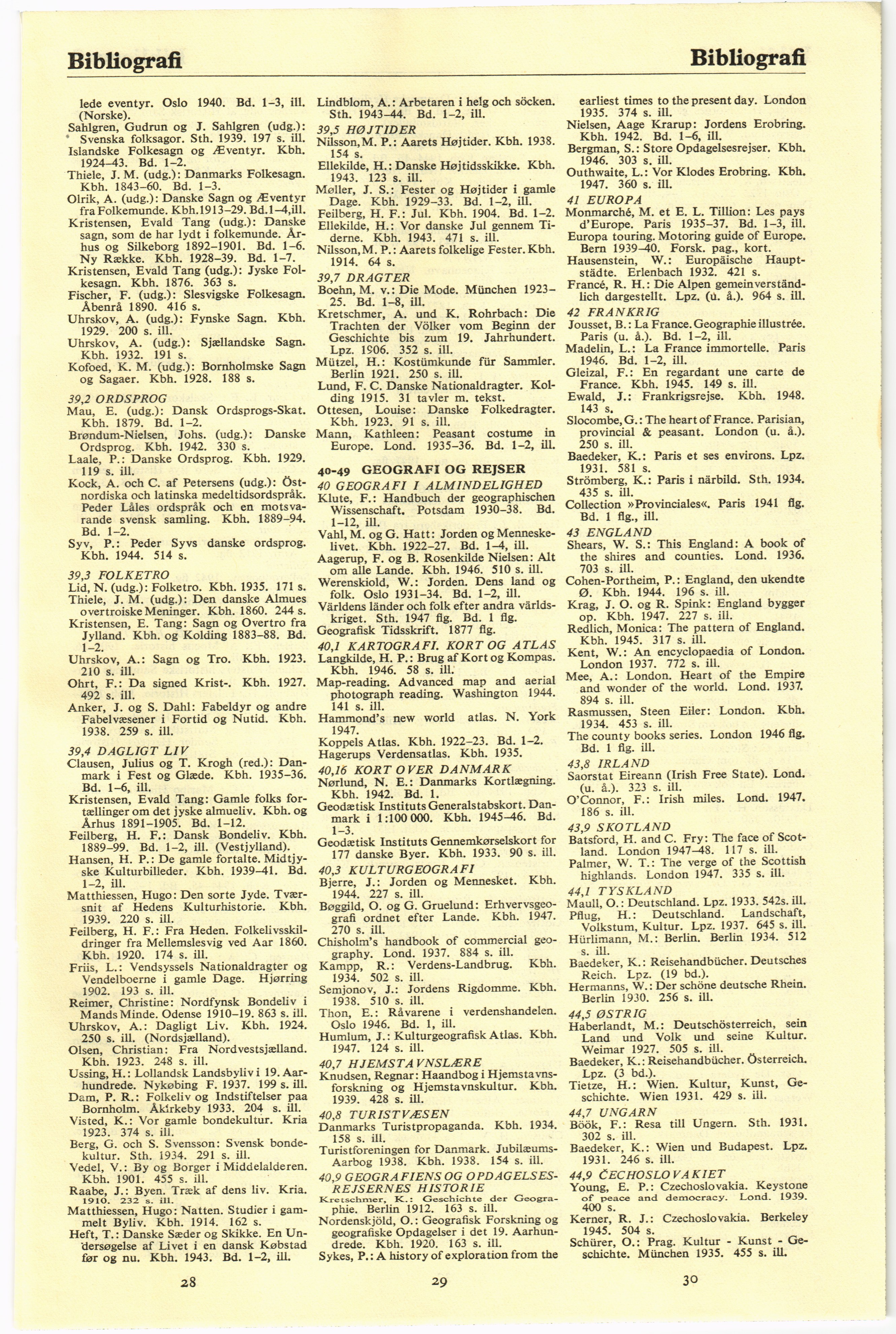 Full resolution (JPEG) - On this page / på denna sida - Bibliografi - 39 Folkeminder og almueliv - 40 Geografi i almindelighed - 41 Europa - 42 Frankrig - 43 Storbritannien og Irland - 44 Tyskland og de gl. østrig-ungarske lande