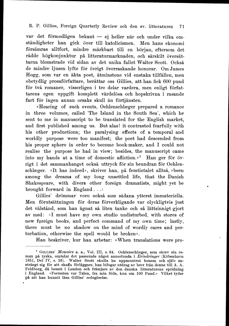 R. P. Gillies, Foreign Quarterly Review och den sv. litteraturen 71