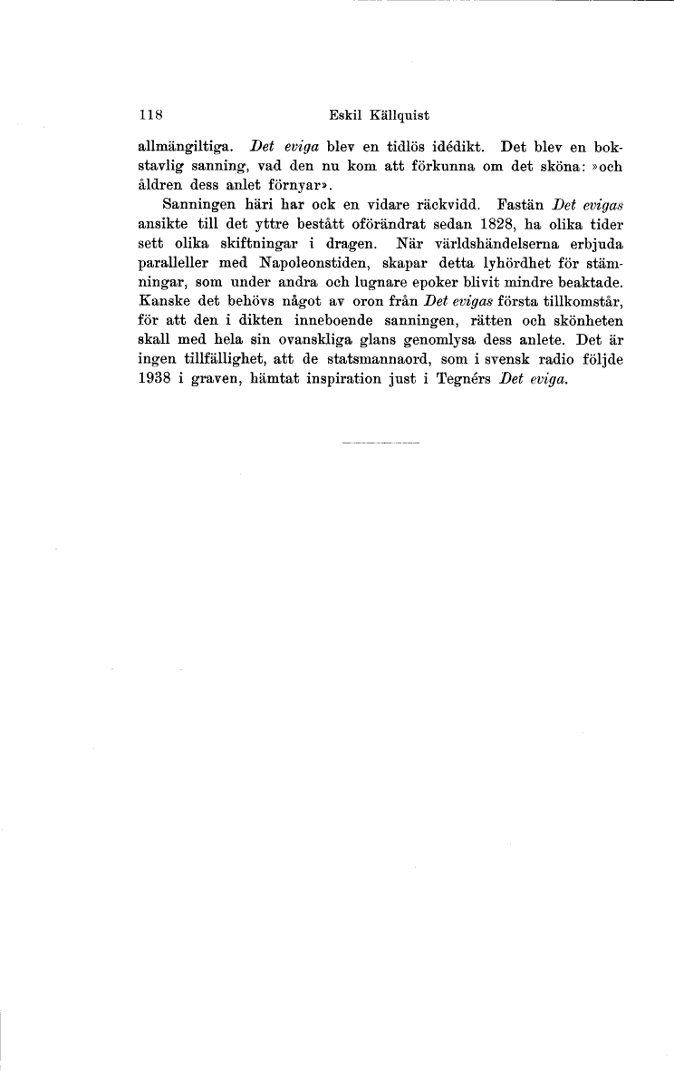 1938 i graven, hämtat inspiration just i Tegnérs Det eviga.