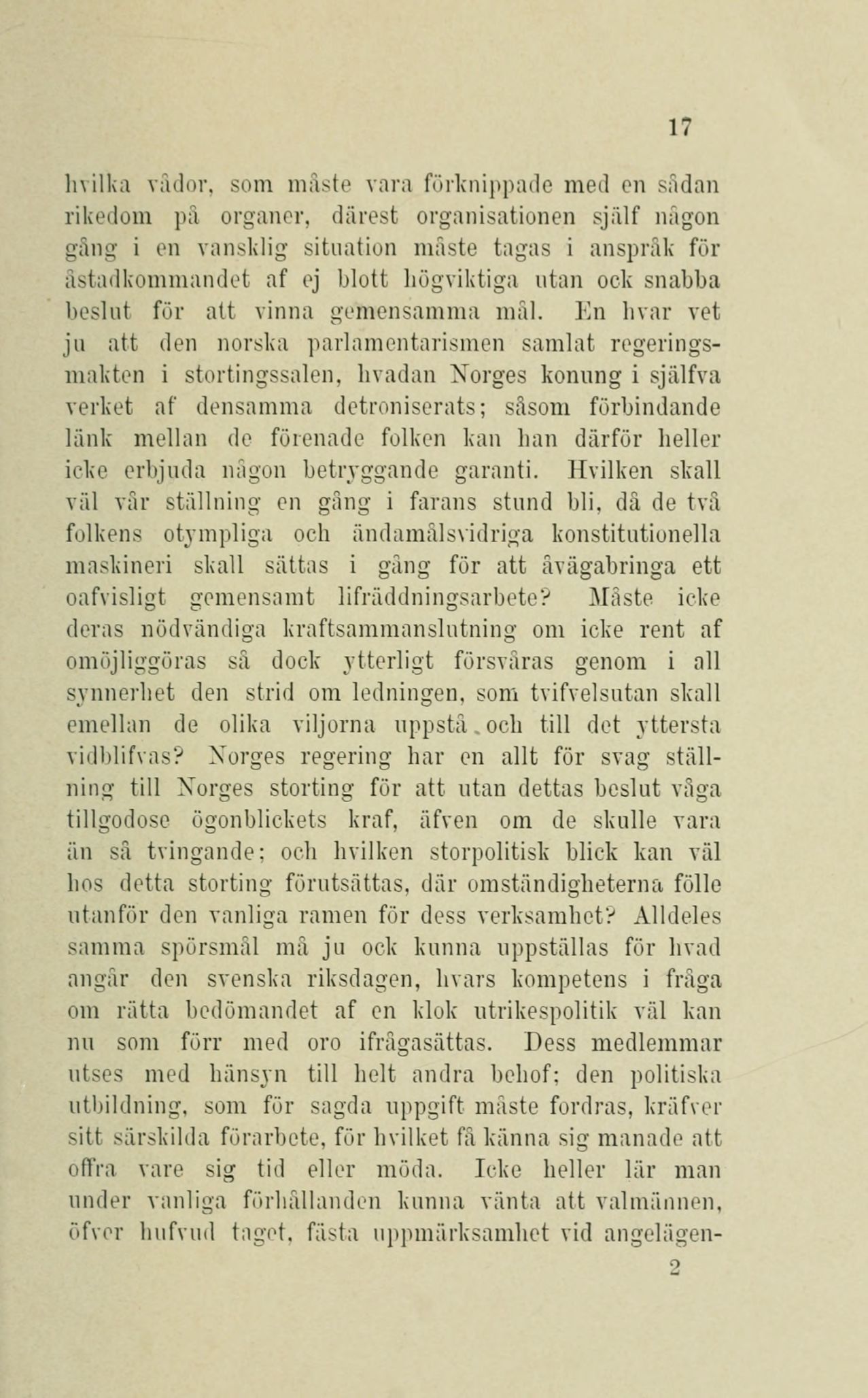 om rätta bedömandet af en klok utrikespolitik väl kan