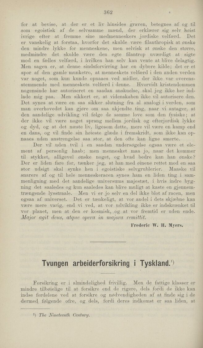 Full resolution (JPEG) - On this page / på denna sida - Frederic W. H. Myers: Videnskaben og et tilkommende liv - F. Heinr. Geffcken: Tvingen arbeiderforsikring i Tyskland