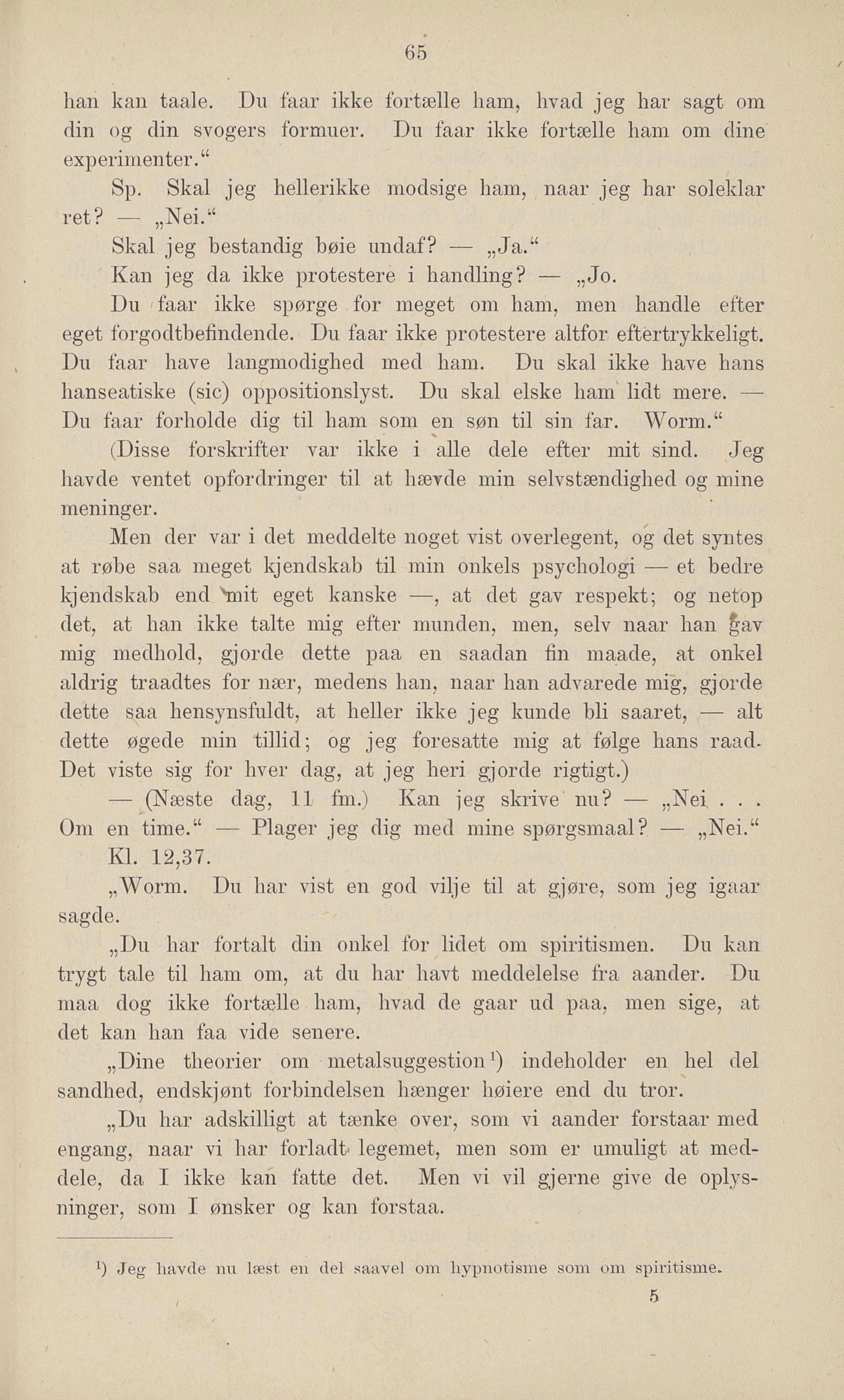 *) Jeg havde nu læst en del saavel om hypnotisme som om spiritisme.