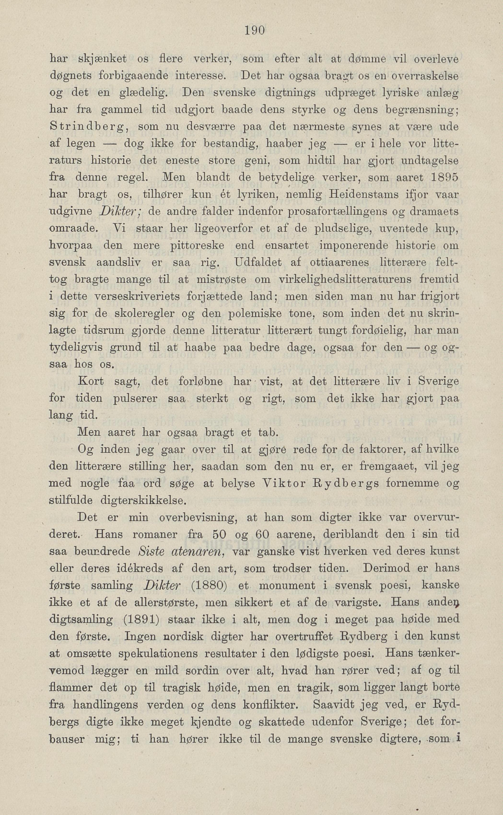 med nogle faa ord søge at belyse Viktor Rydbergs fornemme og