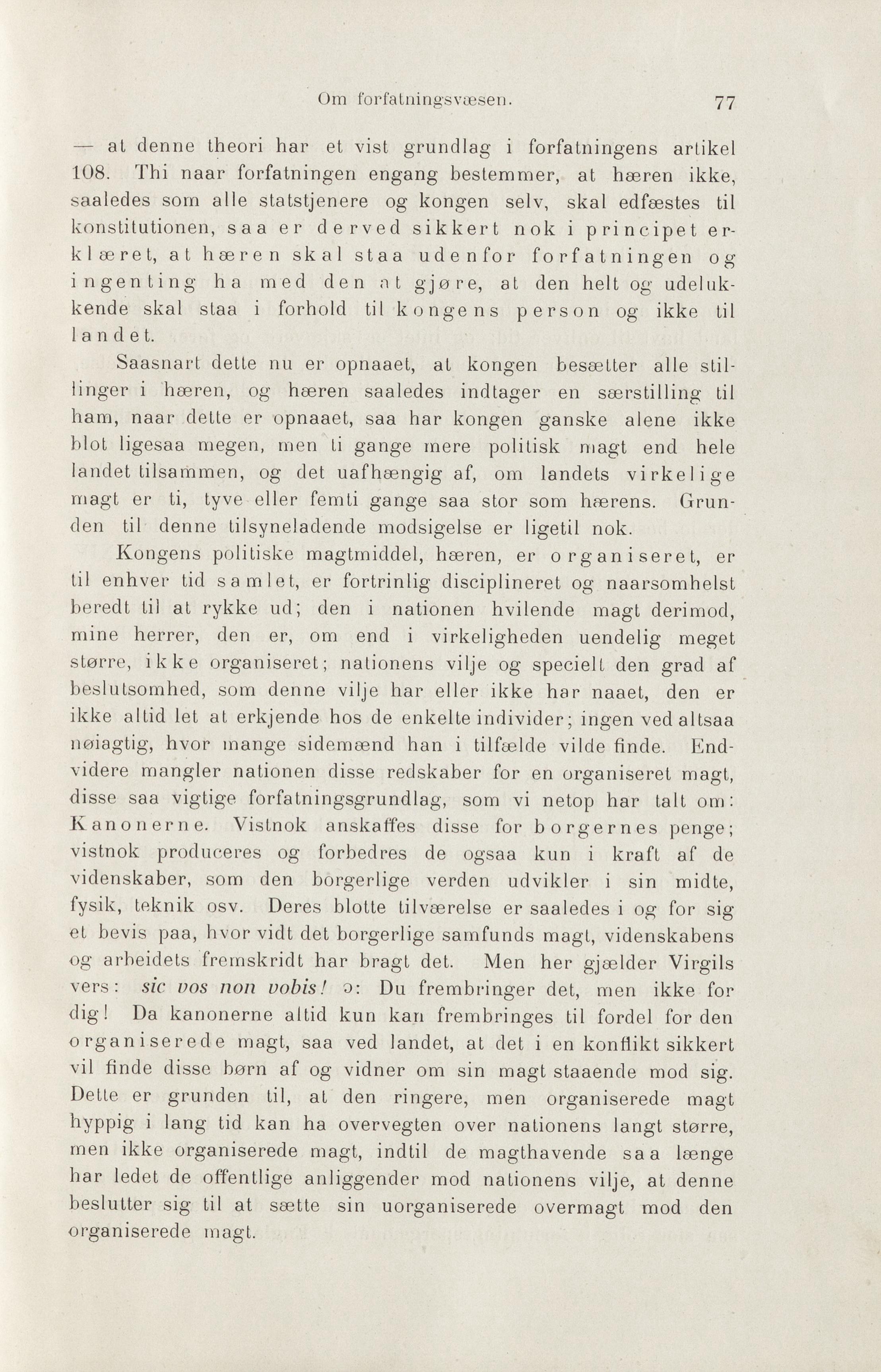 108. Thi naar forfatningen engang bestemmer, at hæren ikke,