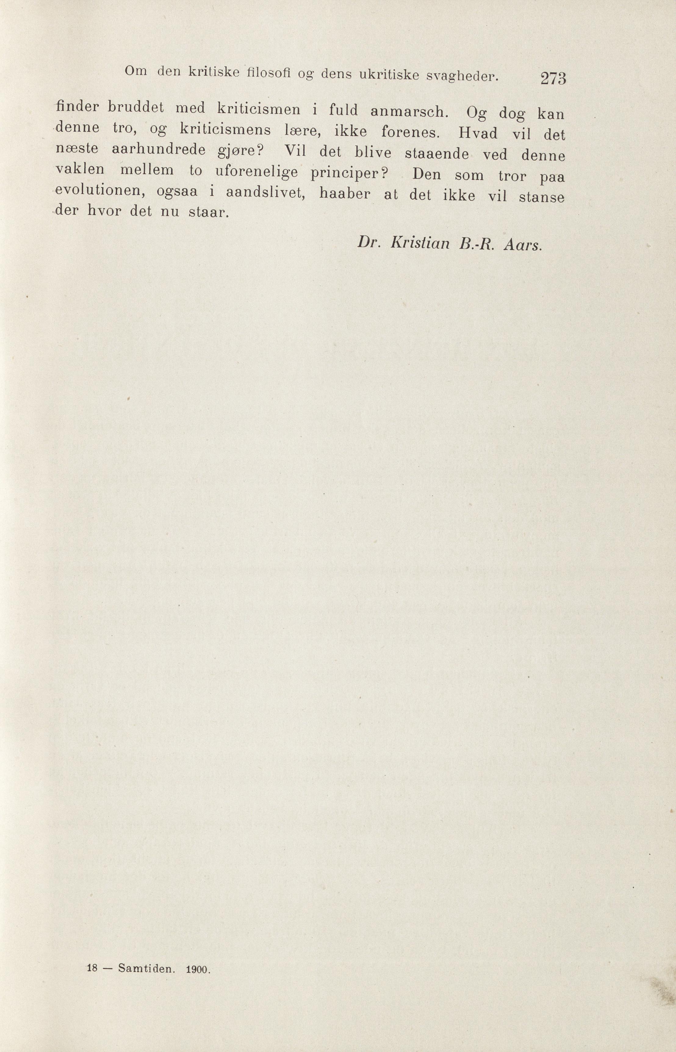 Om clen kritiske filosofi og dens ukritiske svagheder. 273