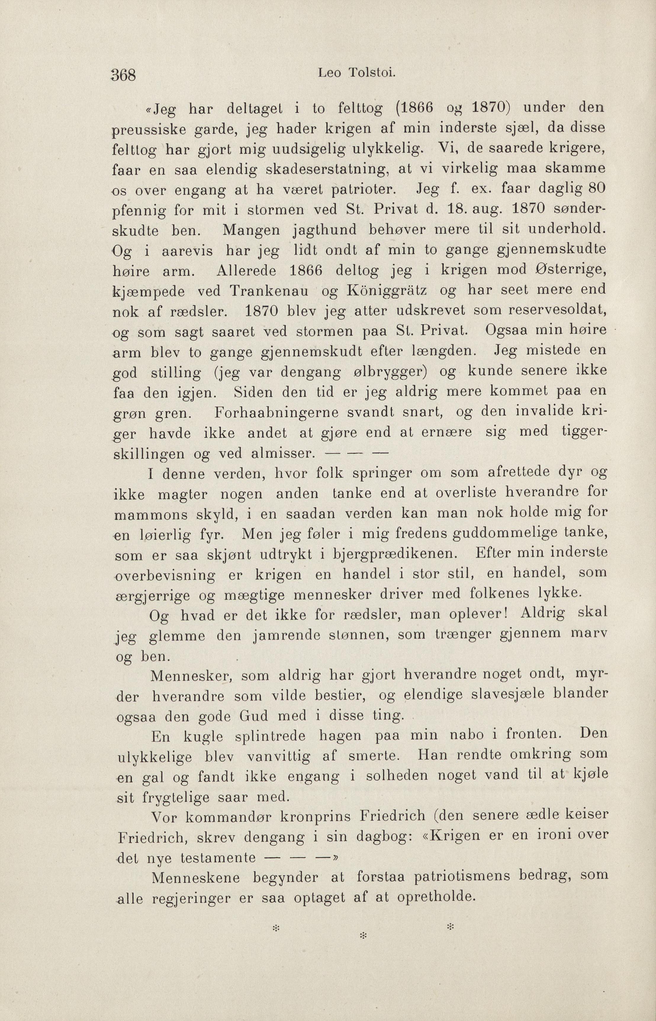 «Jeg har deltaget i to felttog (1866 o^ 1870) under den