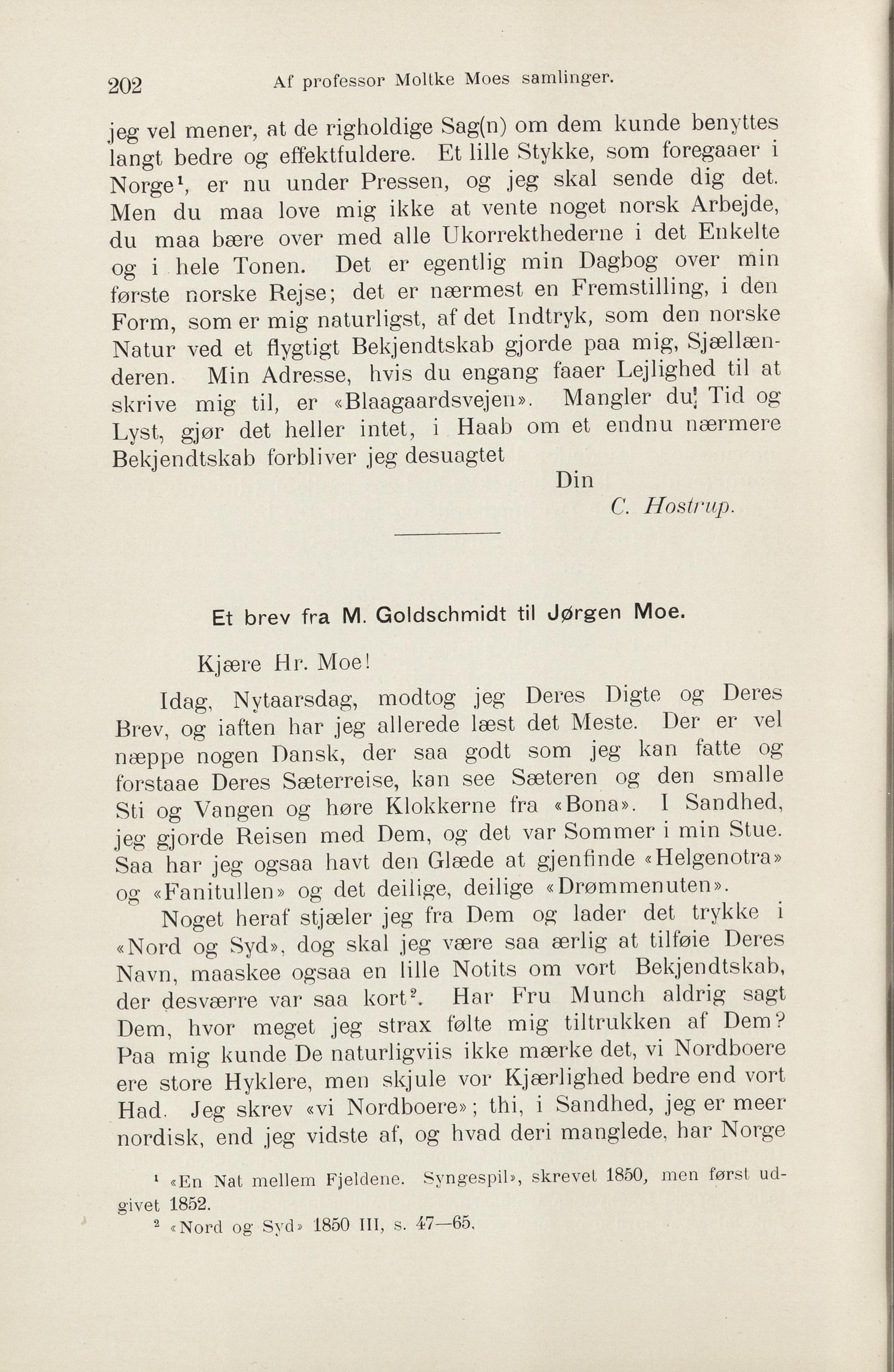 Et brev fra M. Goldschmidt til Jørgen Moe.