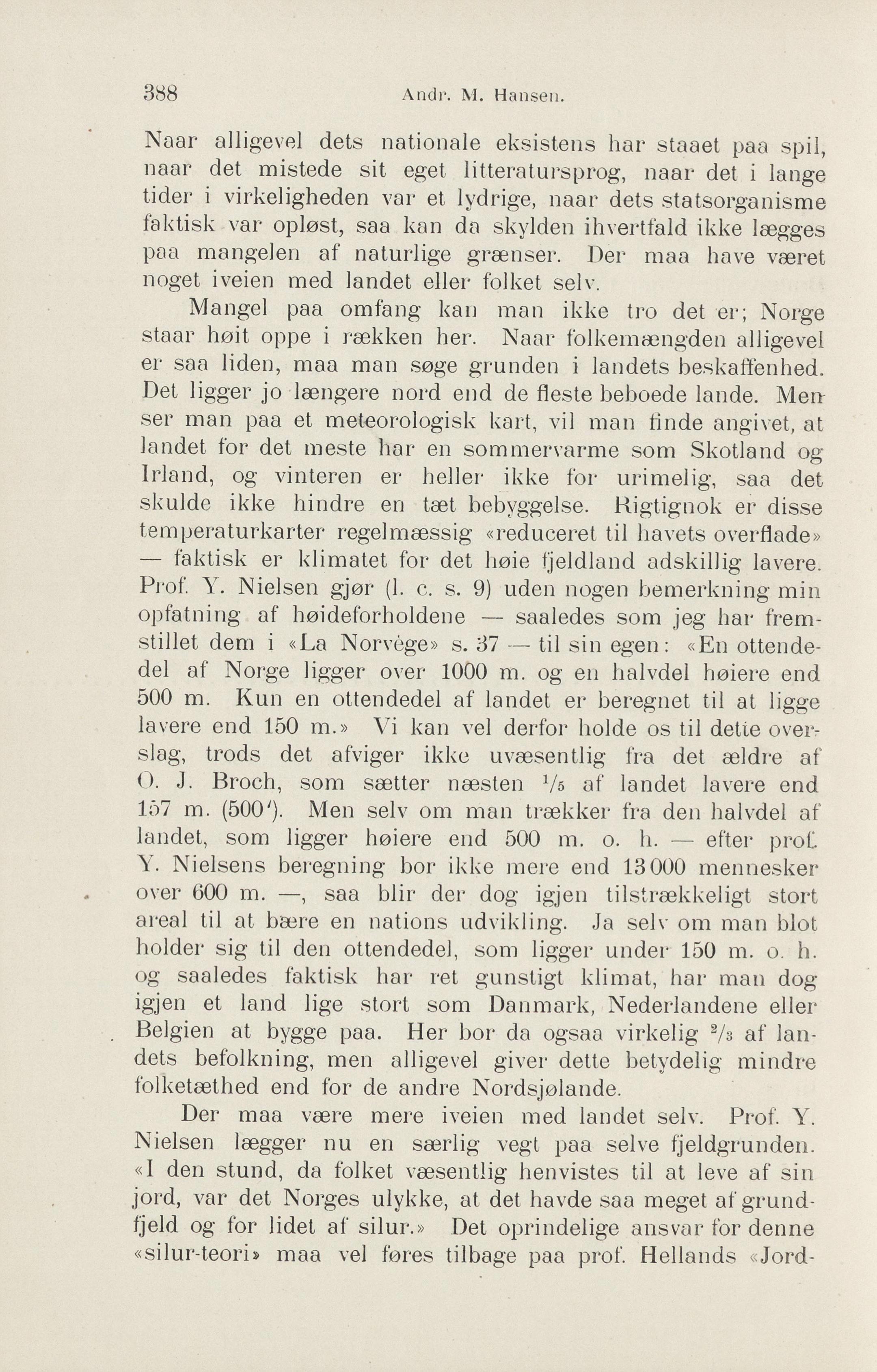 Der maa være mere iveien med landet seiv. Prof. Y.