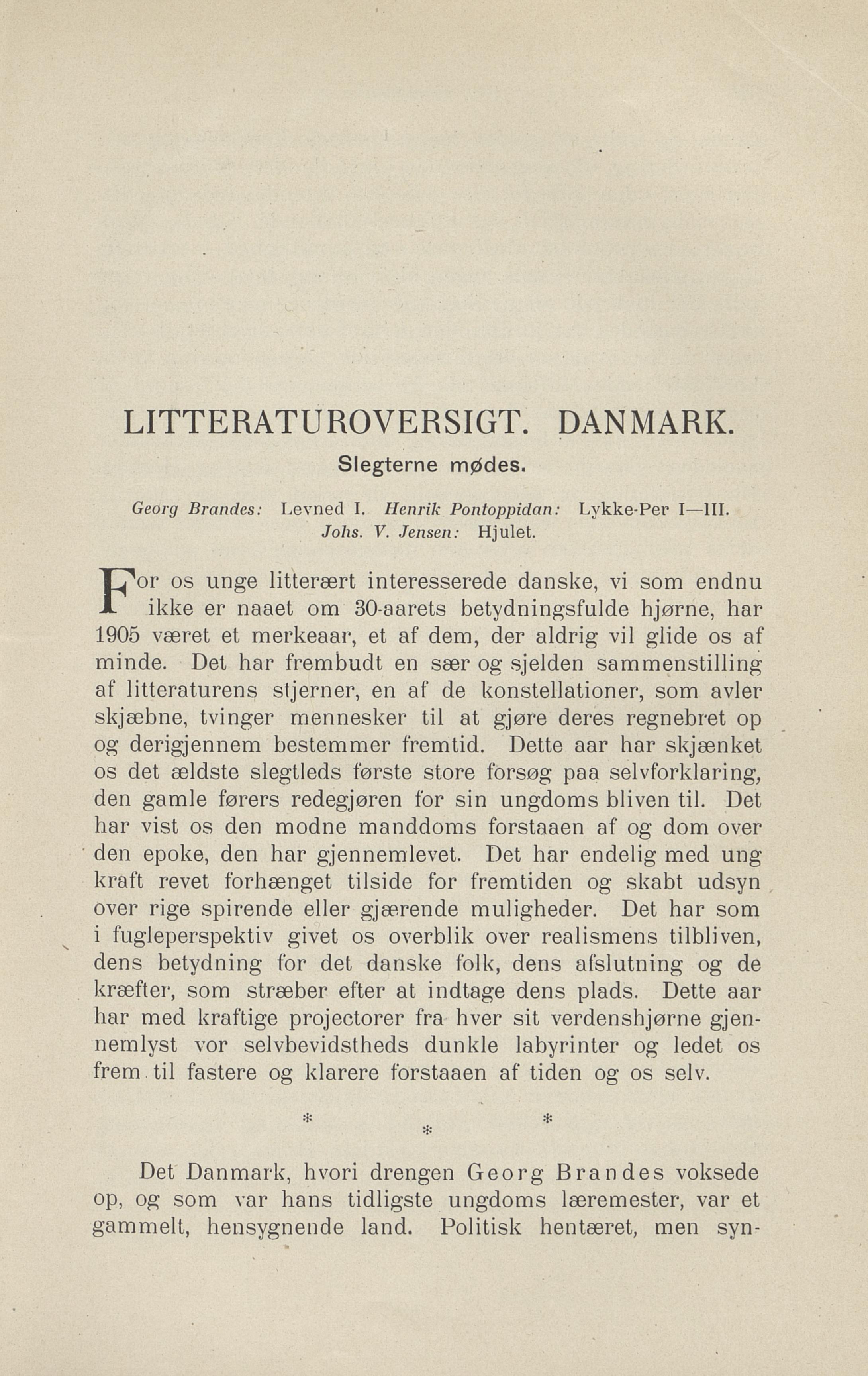 Full resolution (JPEG) - On this page / på denna sida - Paul Fjeldgaard: Litteraturoversigt. Danmark. Slegterne mødes. Georg Brandes: Levned