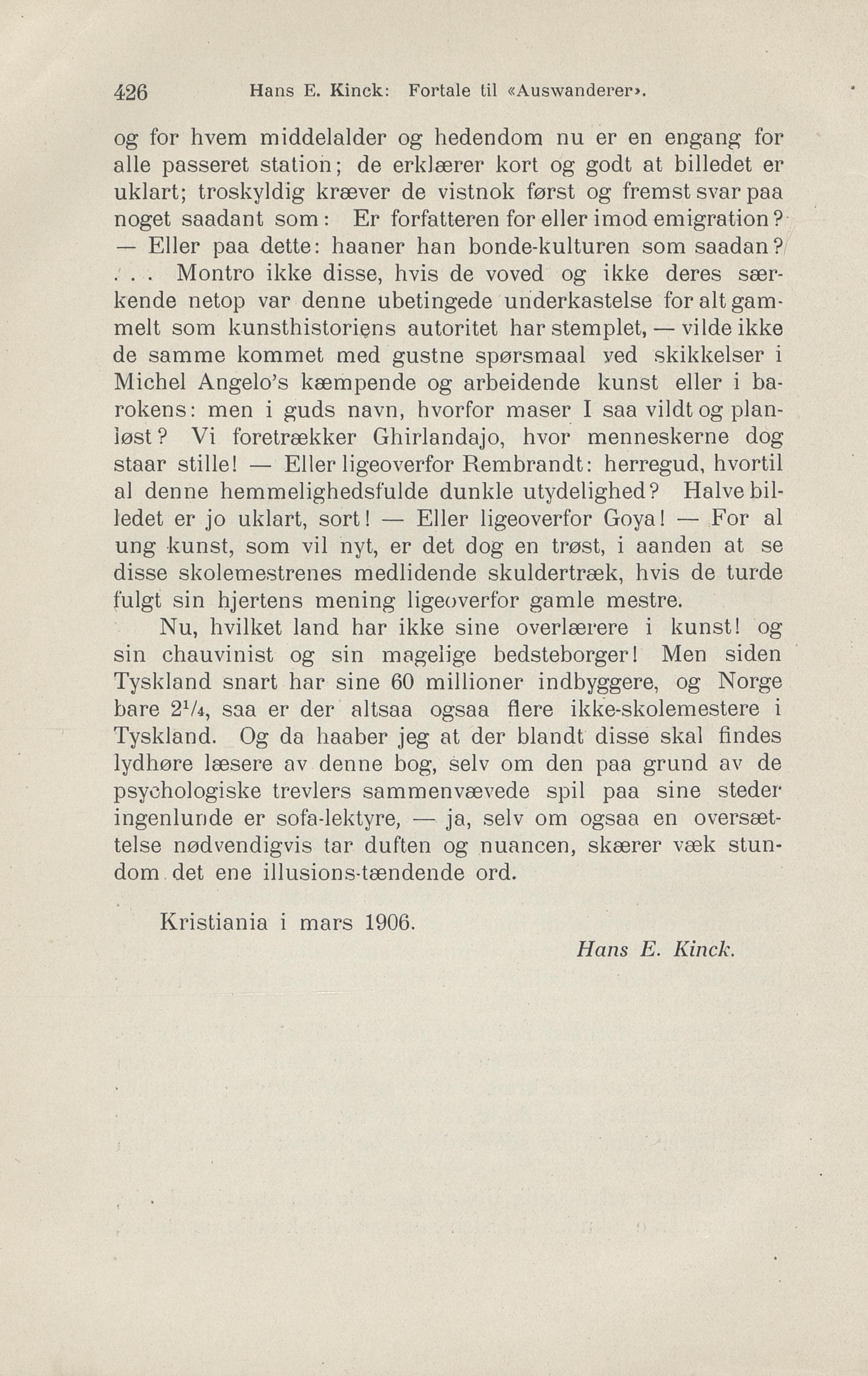 Full resolution (JPEG) - On this page / på denna sida - Hans E. Kinck: Fortale til «Auswanderer»