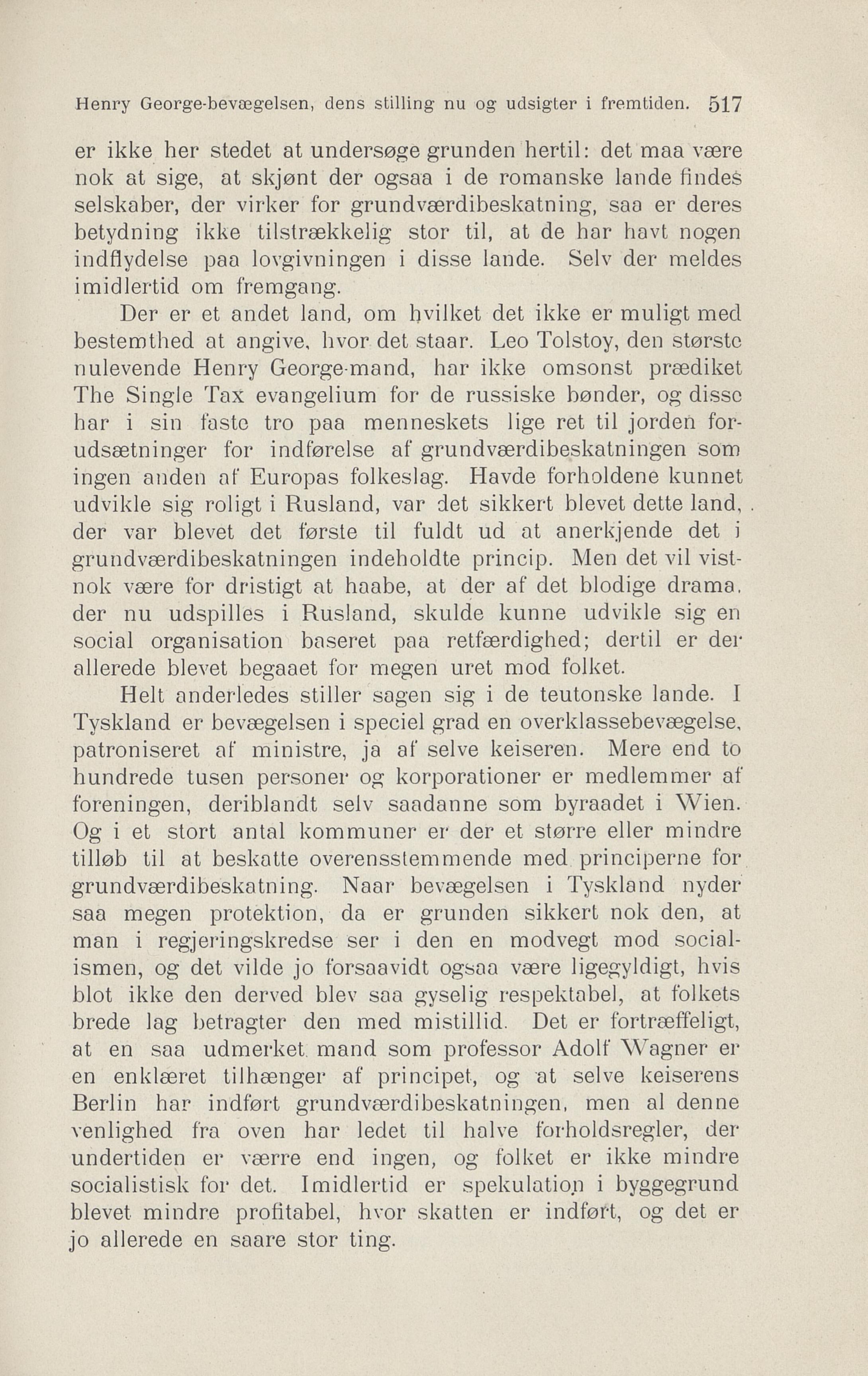 Henry George-bevægelsen, dens stilling nu og udsigter i fremtiden.