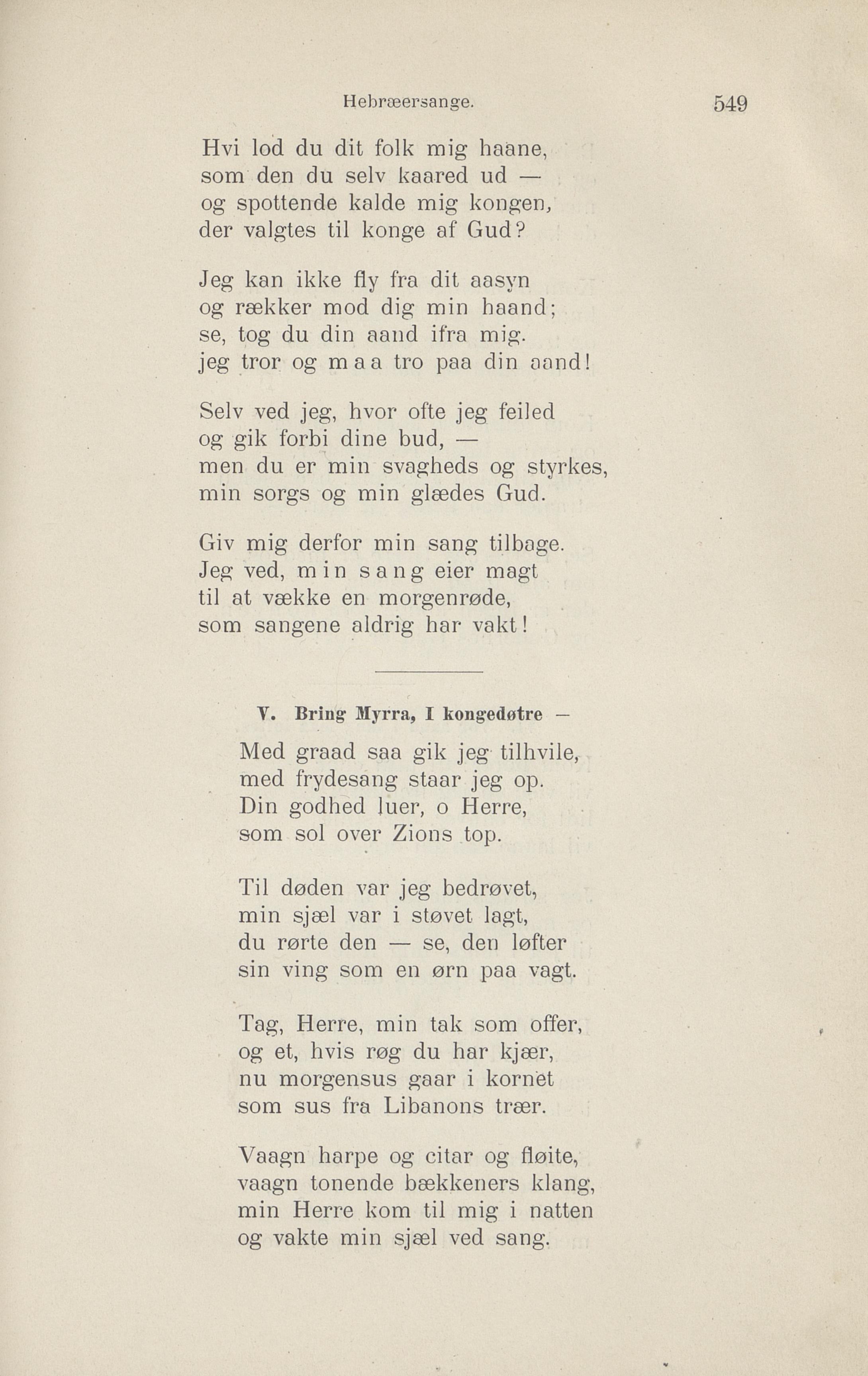 Full resolution (JPEG) - On this page / på denna sida - Carl Schøyen: Hebræersange. I. Davidssangene - IV. Jeg kan ikke fly fra dit aasyn — - V. Bring Myrra, I kongedøtre —