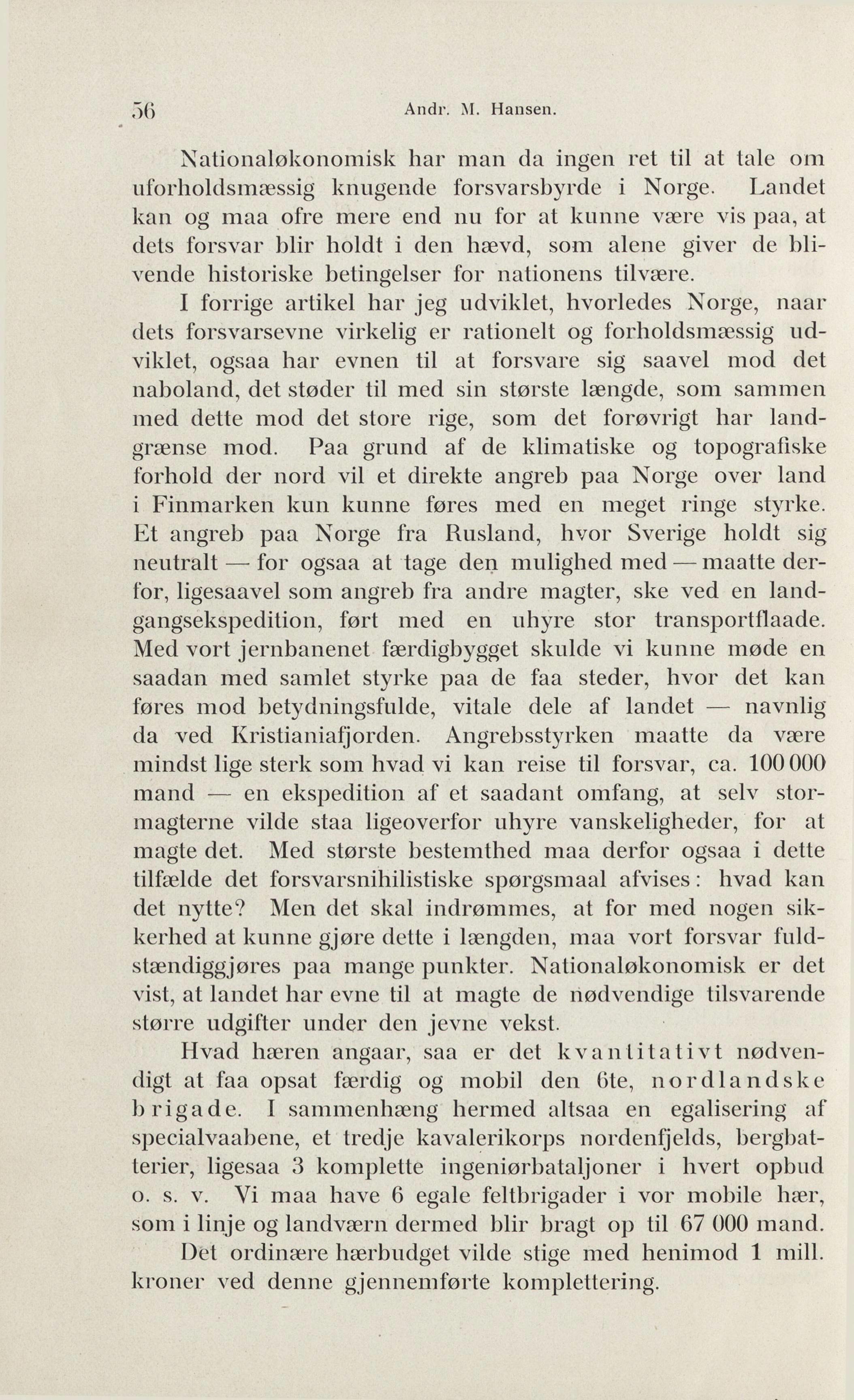Full resolution (JPEG) - On this page / på denna sida - Andr. M. Hansen: Tidens tanker. Vort forsvar. II