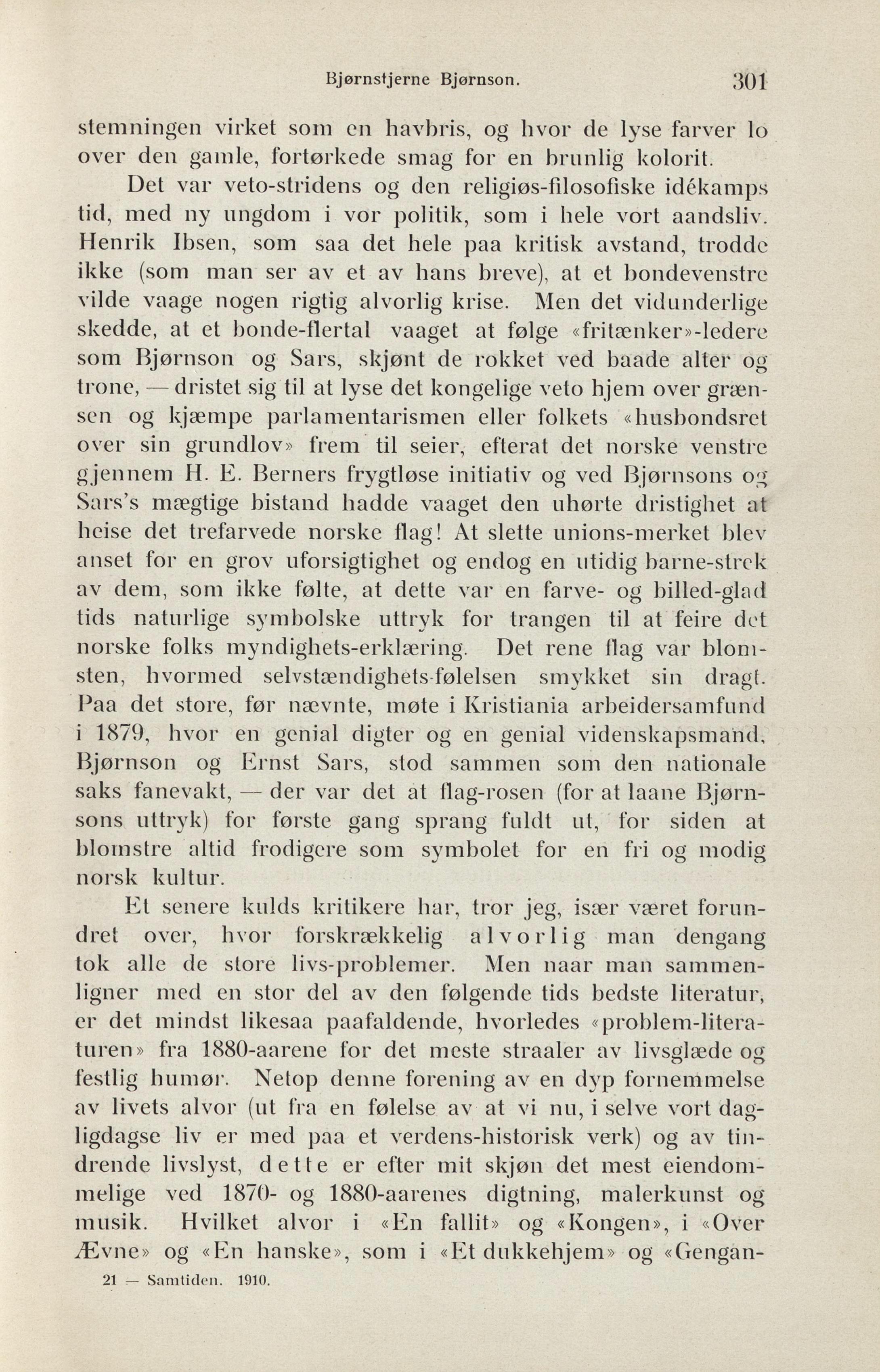 Bjørnson og Ernst Sars, stod sammen som den nationale