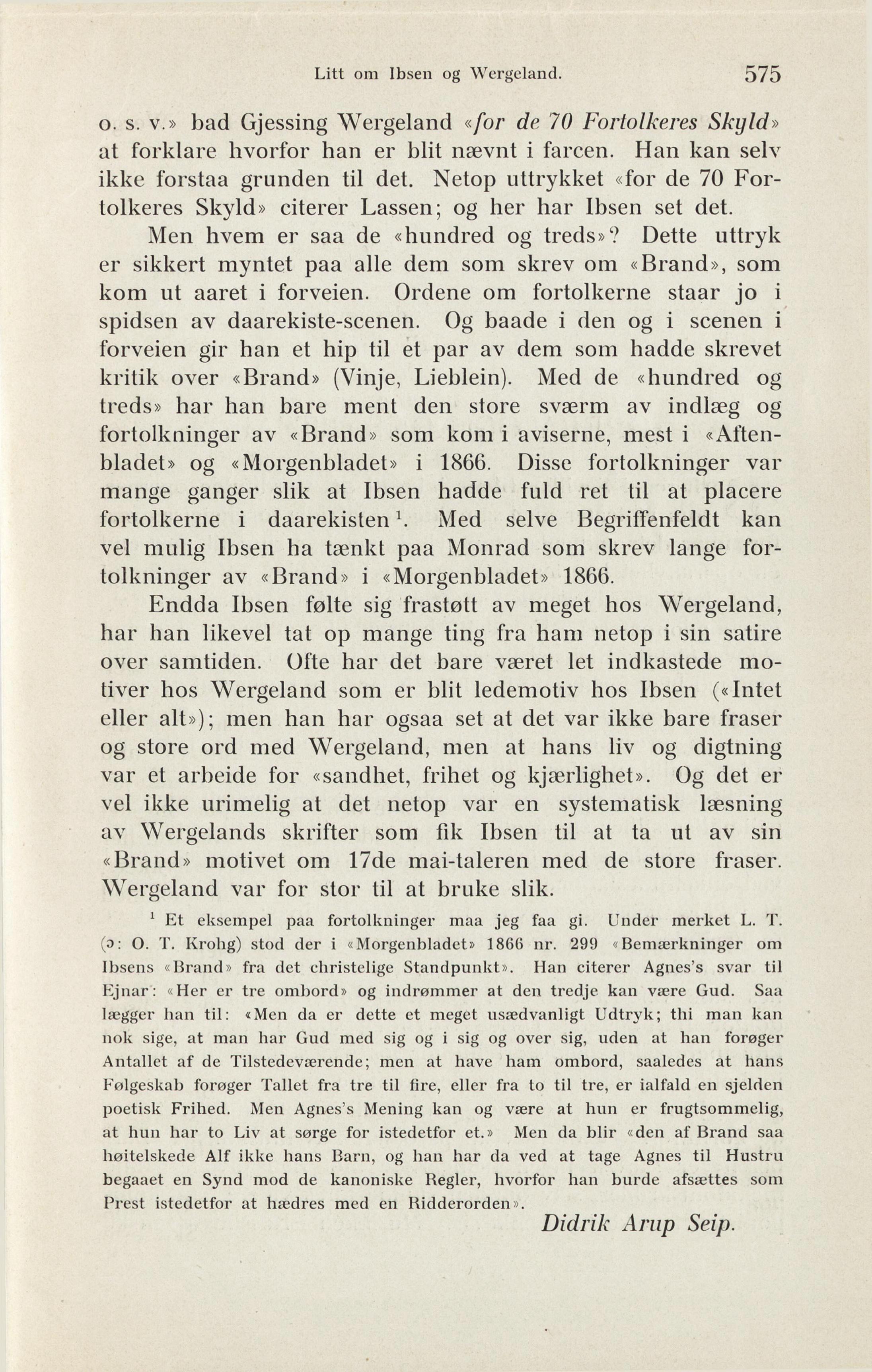 Full resolution (JPEG) - On this page / på denna sida - Didrik Arup Seip: Litt om Ibsen og Wergeland