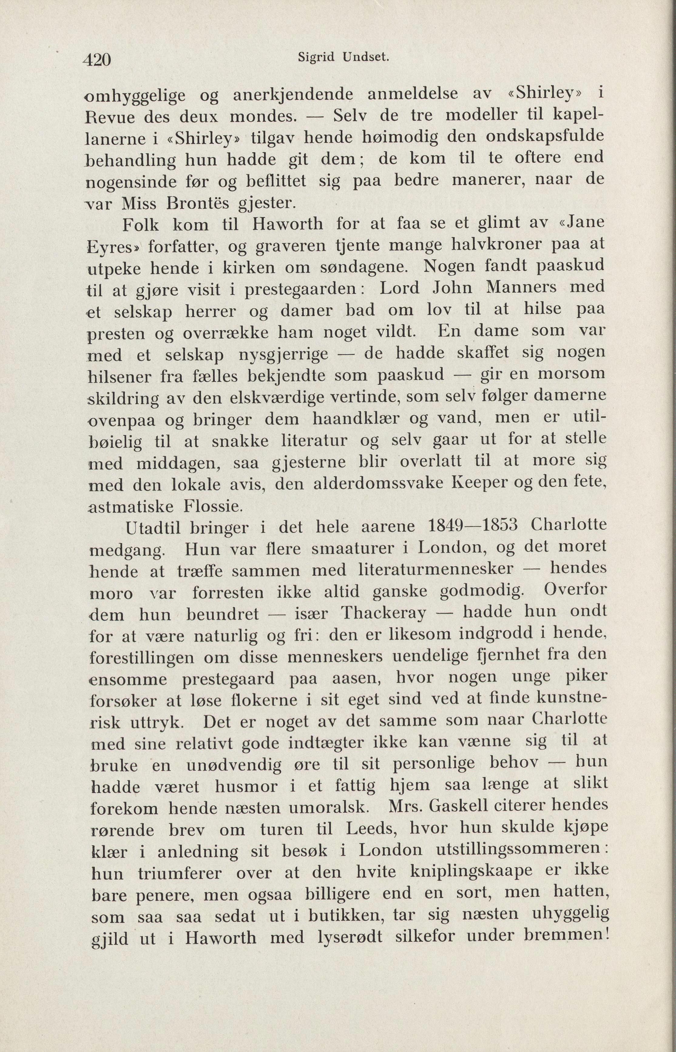 forekom hende næsten umoralsk. Mrs. Gaskell citerer hendes