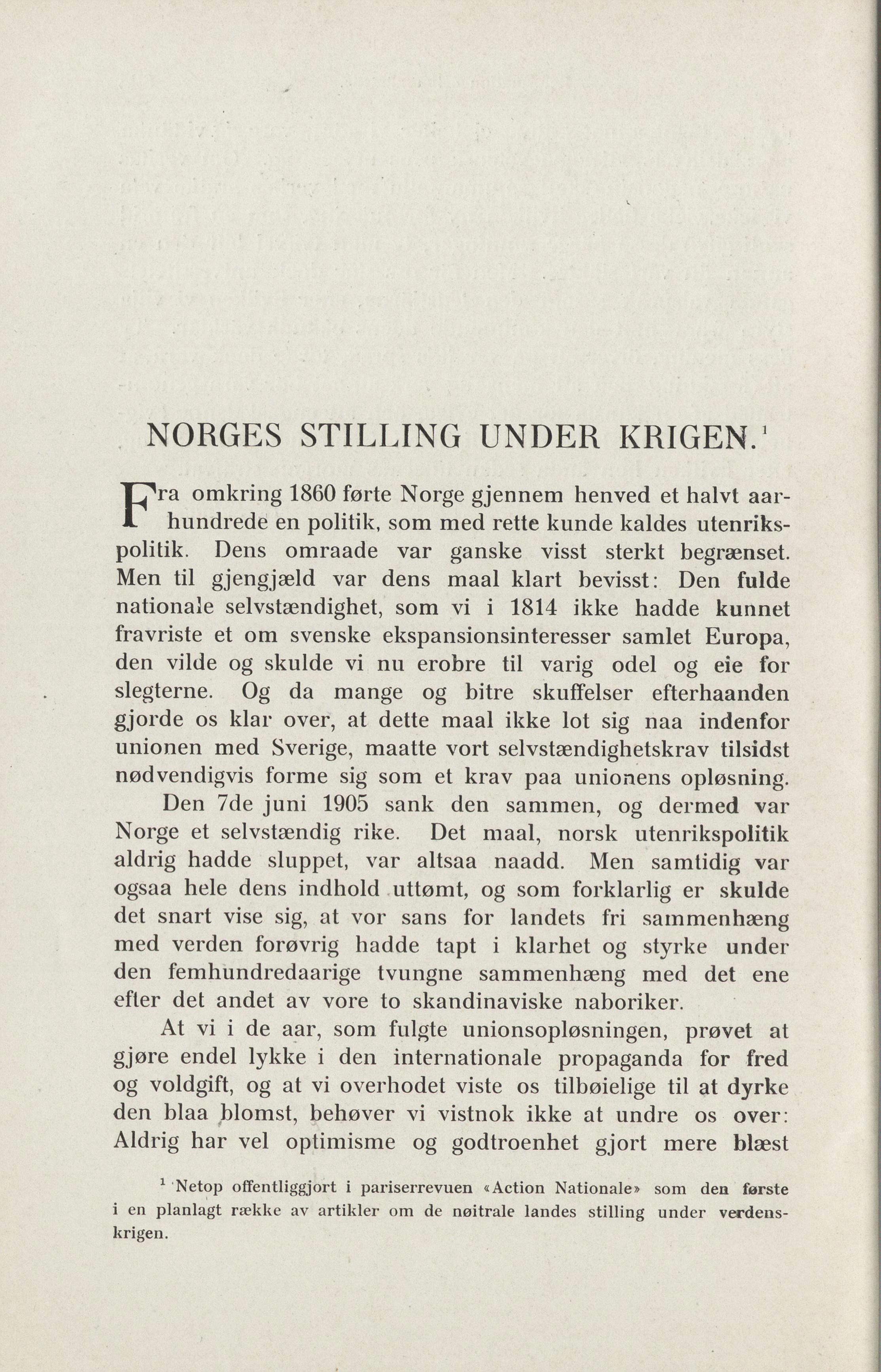 Norge et selvstændig rike. Det maal, norsk utenrikspolitik