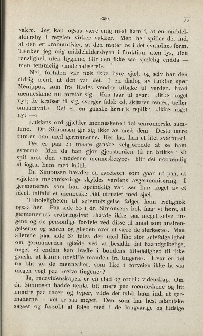 Dr. Simonsen hævder en raceteori, som gaar ut paa, at