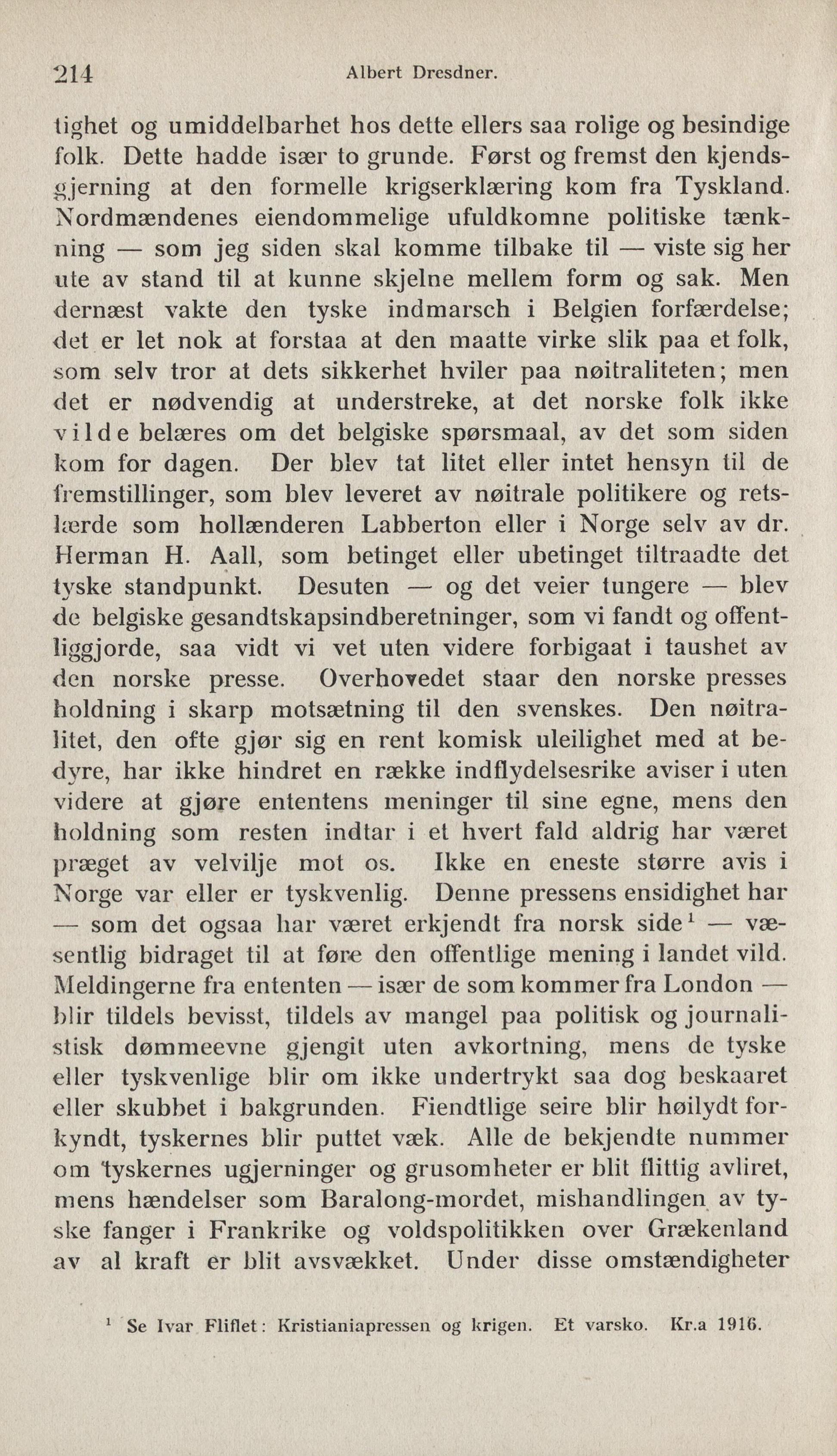 Se Ivar Fliflet : Kristianiapressen og krigen. Et varsko. Kr.a 1916.