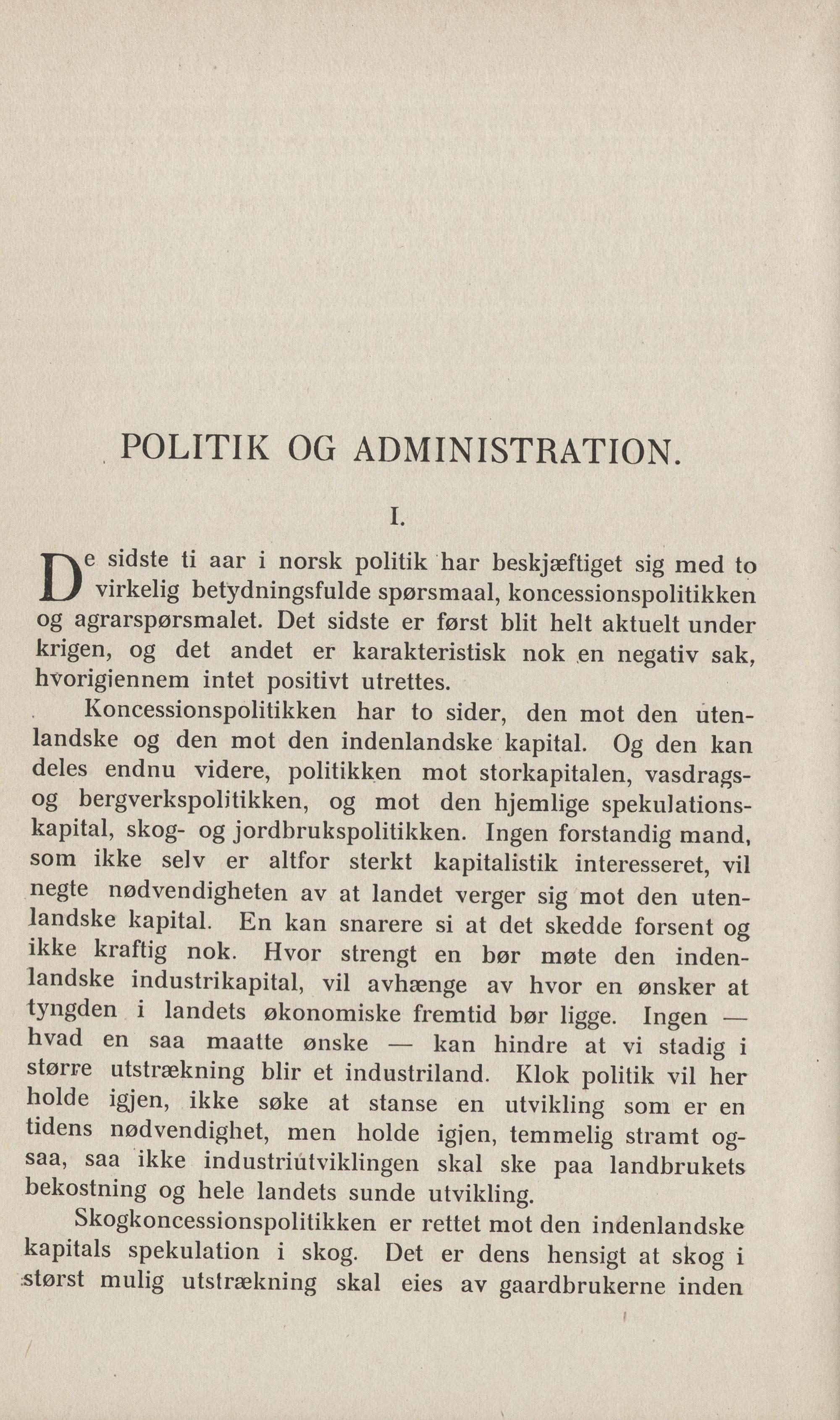 kapital, skog- og jordbrukspolitikken. Ingen forstandig mand,