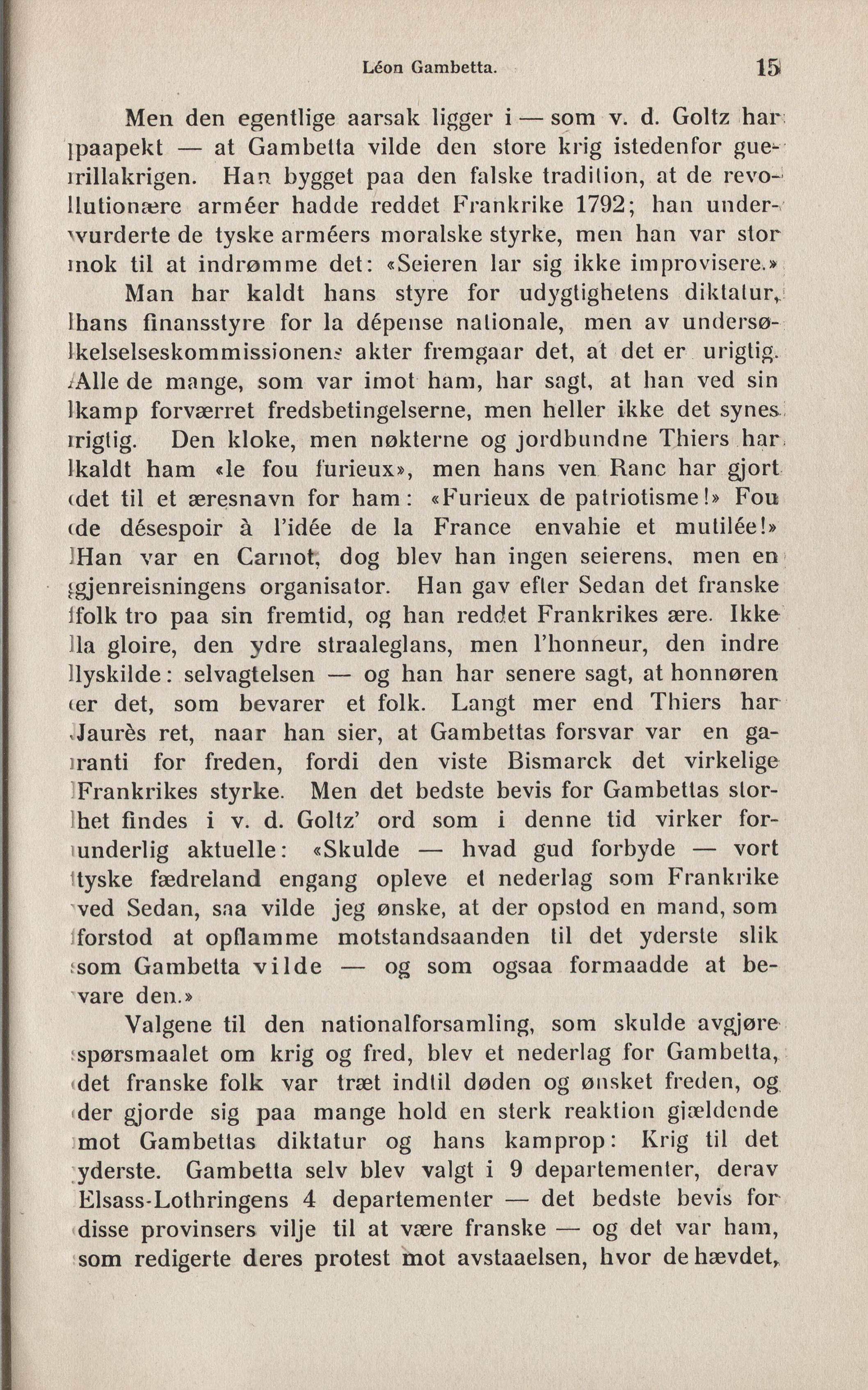 jpaapekt at Gambetta vilde den store krig istedenfor