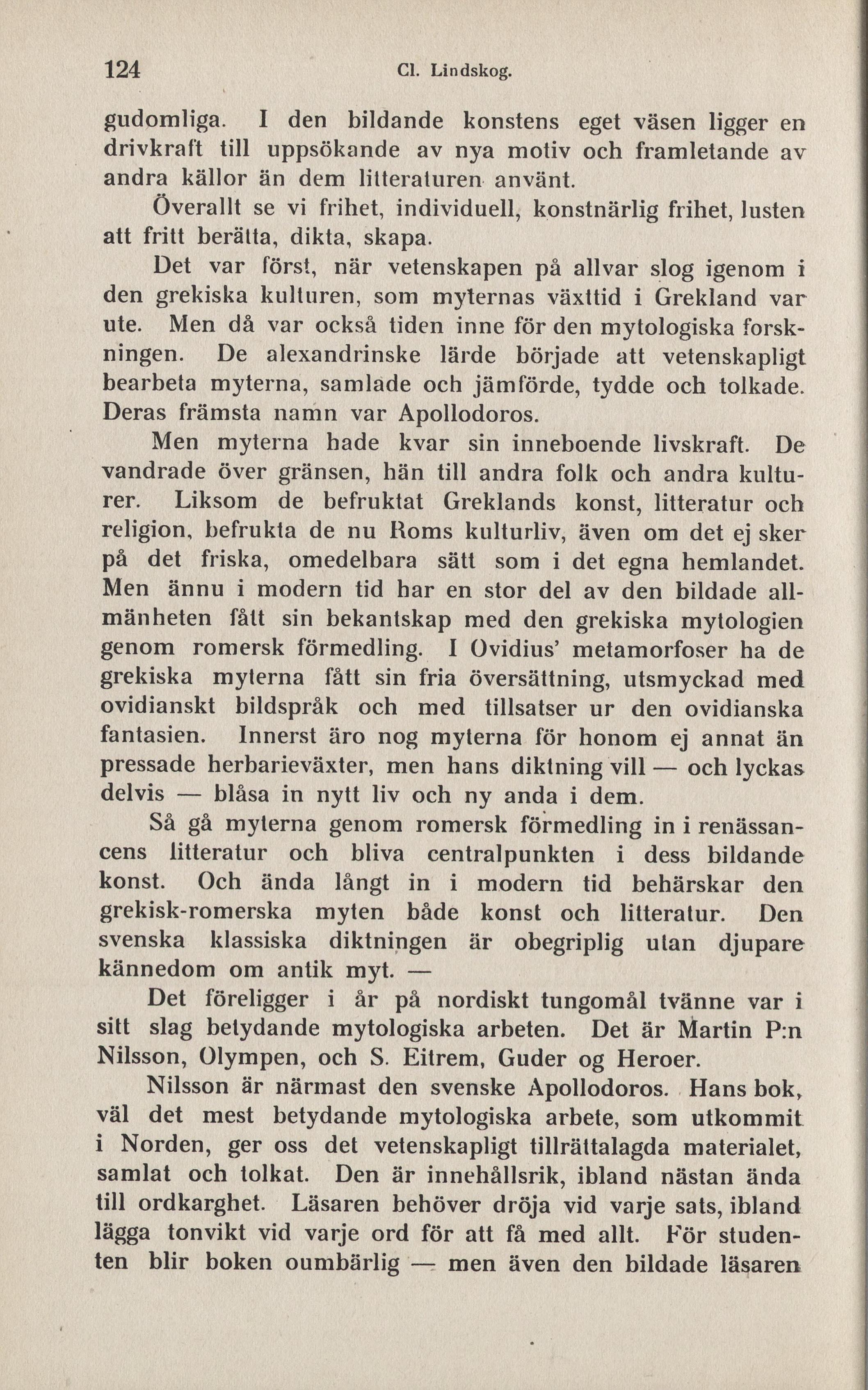 Nilsson är närmast den svenske Apollodoros. Hans bok,