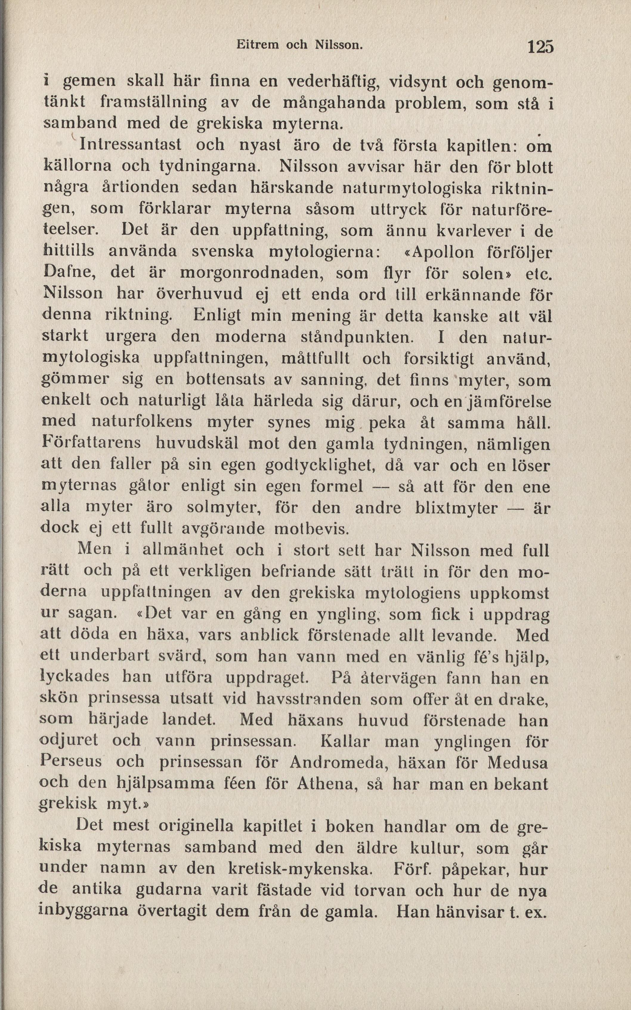 källorna och tydningarna. Nilsson avvisar här den för blott