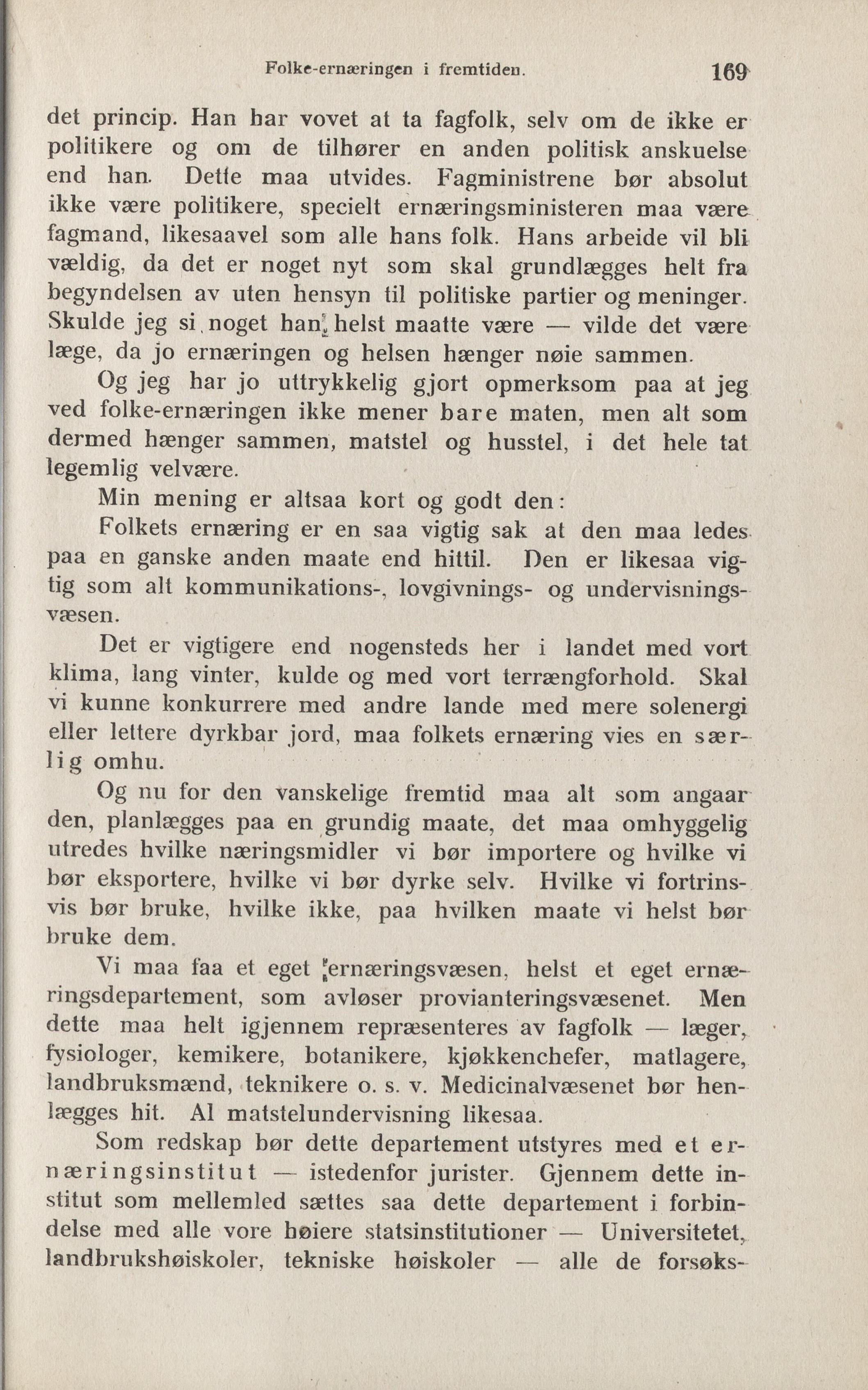 Folkets ernæring er en saa vigtig sak at den maa ledes