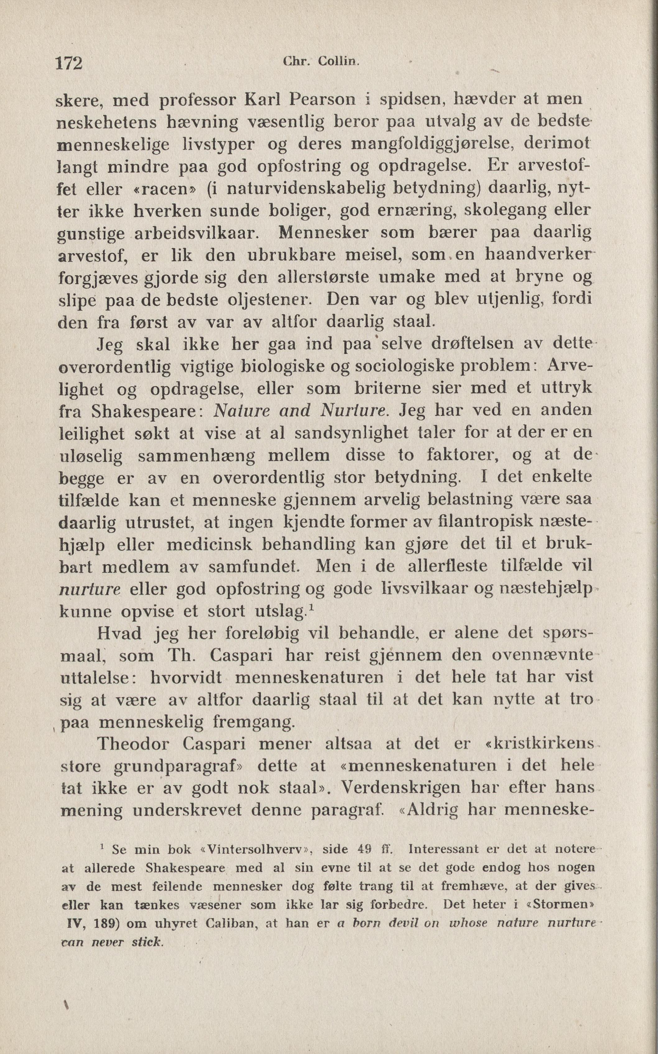 fra Shakespeare: Nature and Nuriure. Jeg har ved en anden