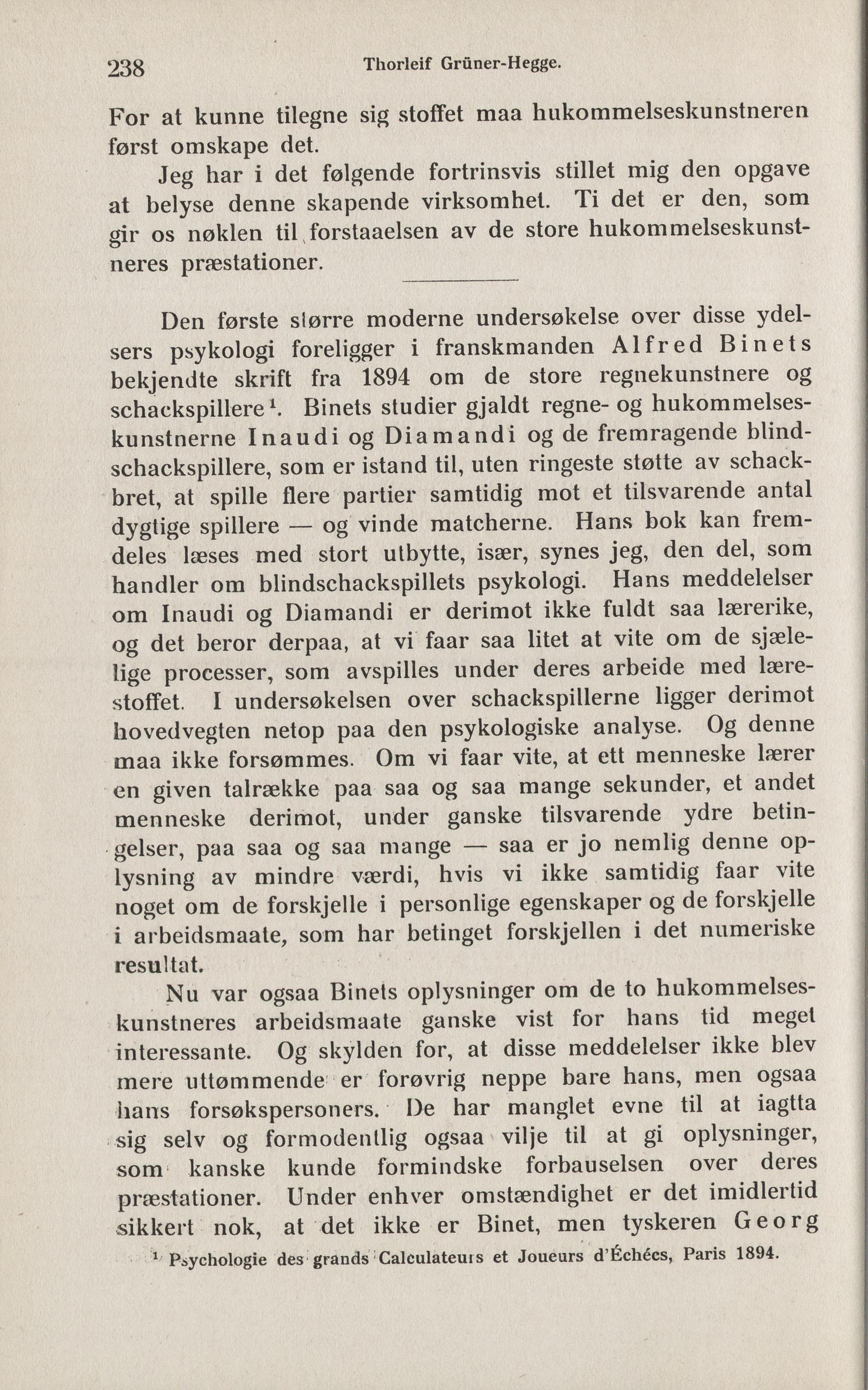 1 Psychologie des grands Calculateuis et Joueurs dÉchées, Paris 1894.
