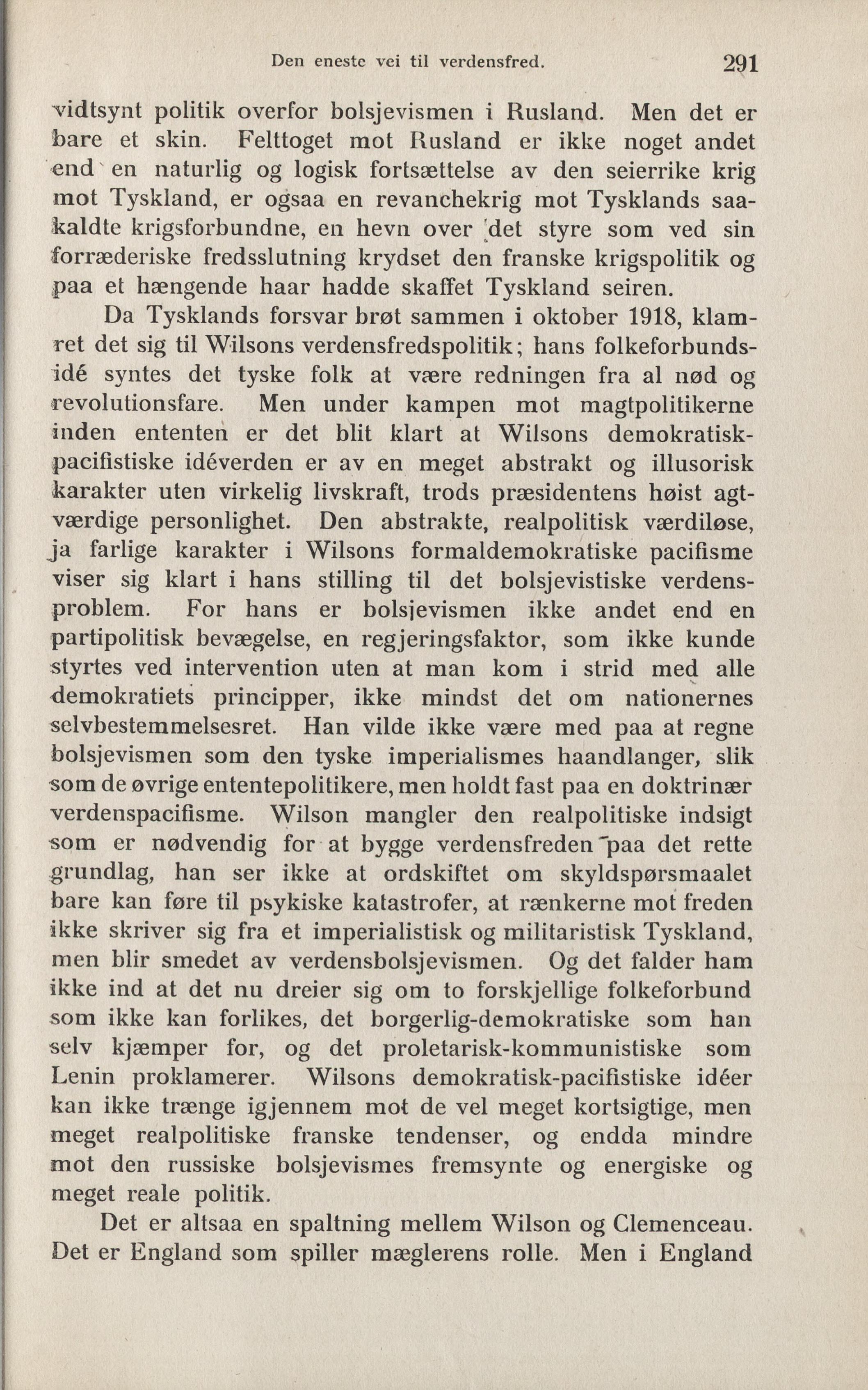 verdenspacifisme. Wilson mangler den realpolitiske indsigt