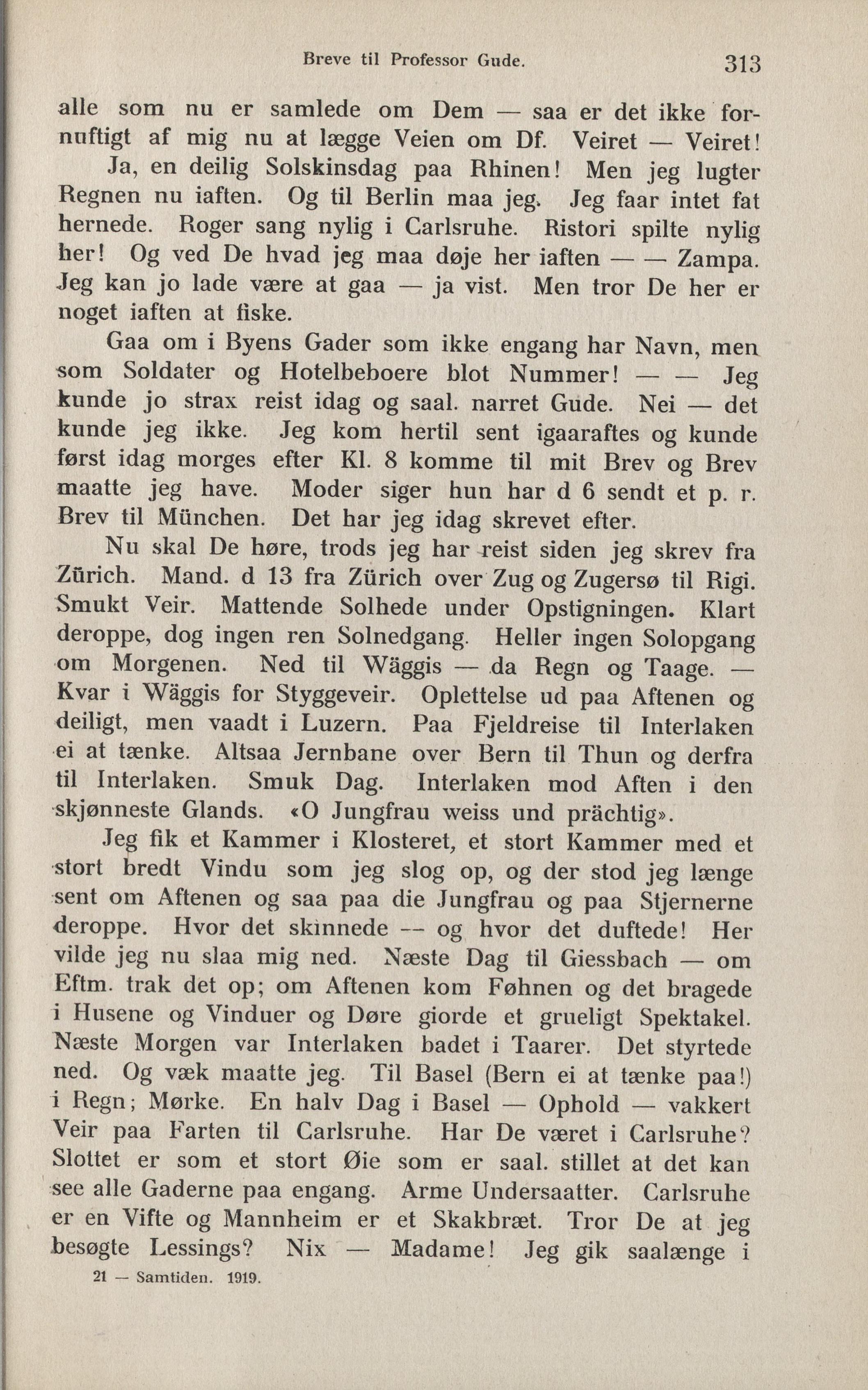 ned. Og væk maatte jeg. Til Basel (Bern ei at tænke paa!)