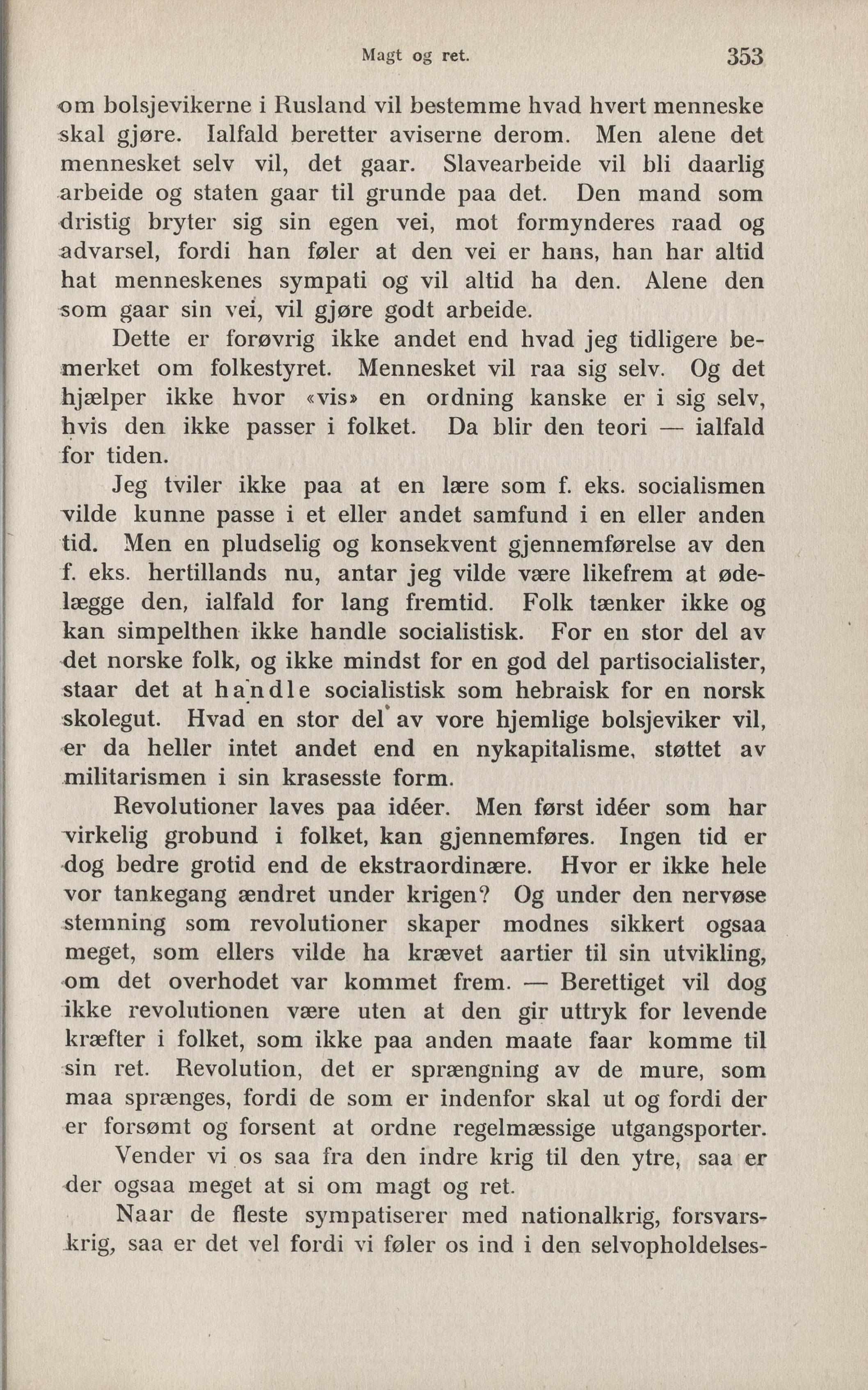 Jeg tviler ikke paa at en lære som f. eks. socialismen
