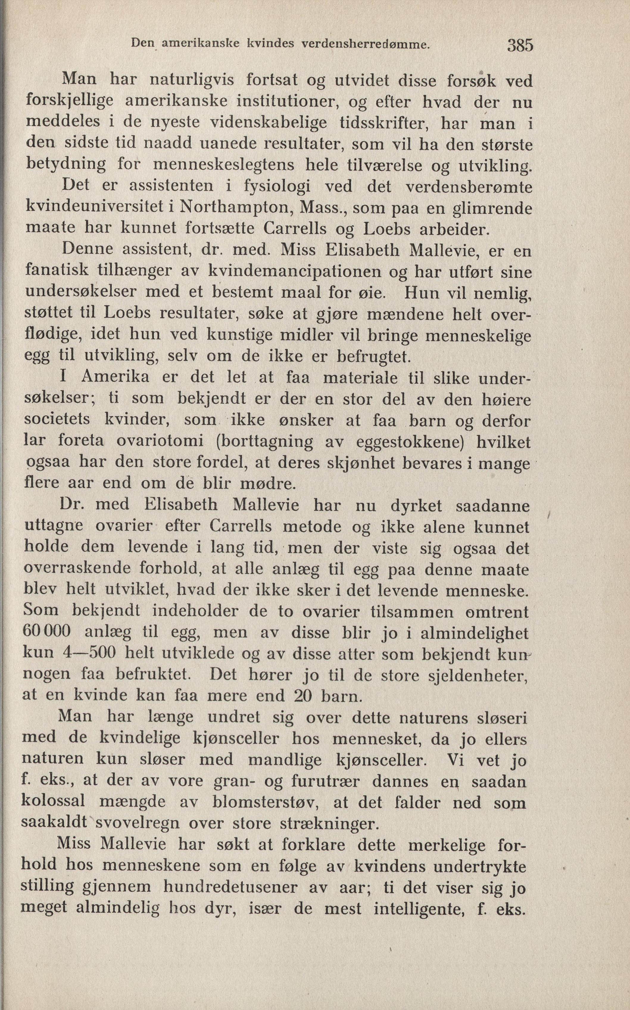 undersøkelser med et bestemt maal for øie. Hun vil nemlig,