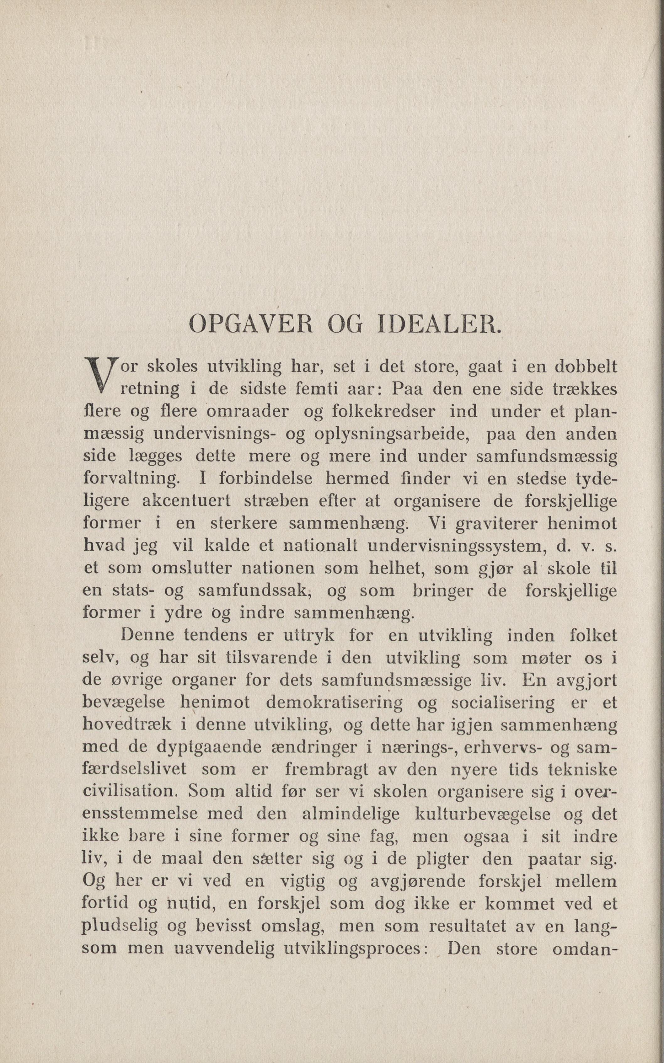 Vor skoles utvikling har, set i det store, gaat i en dobbelt