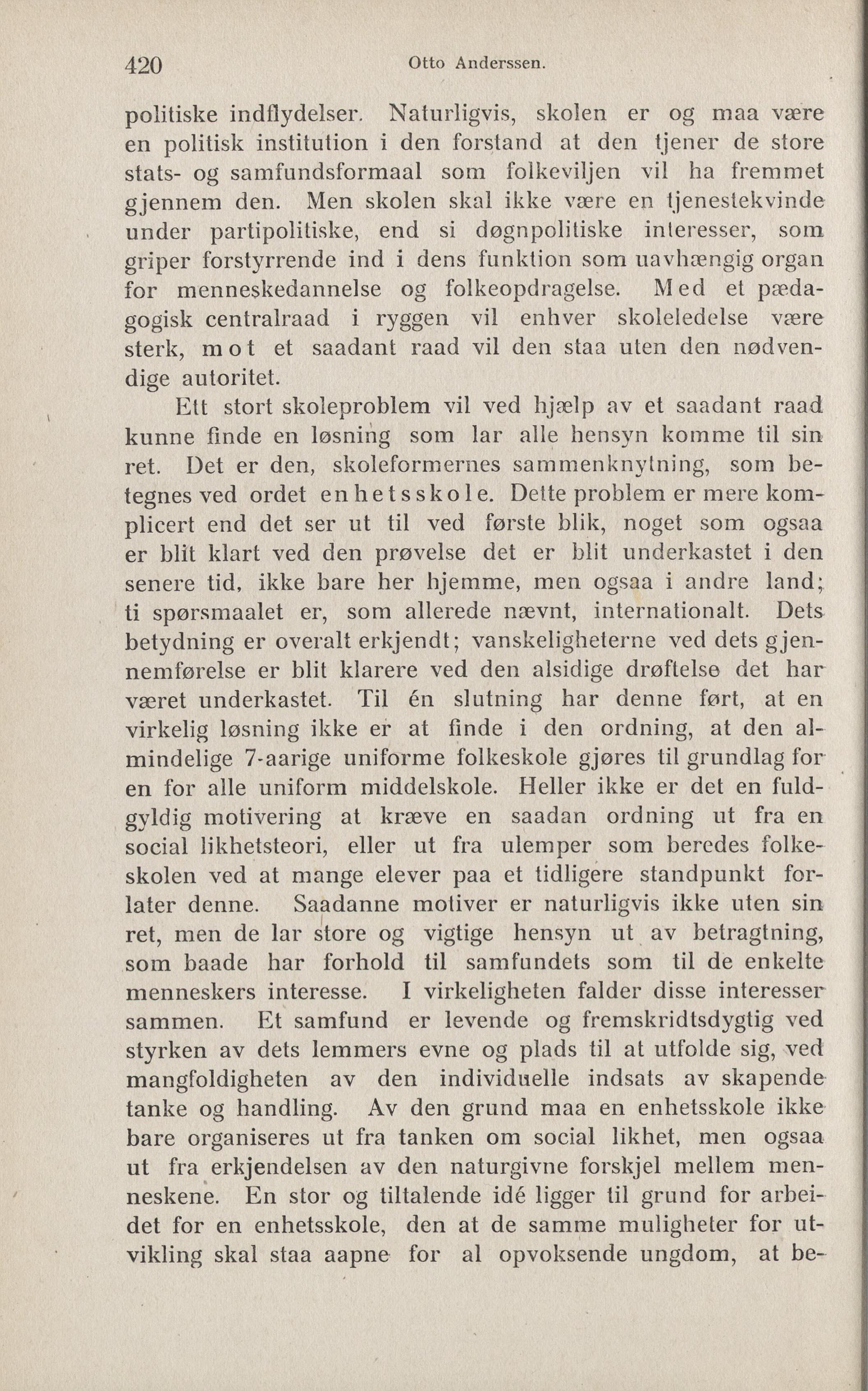 tanke og handling. Av den grund maa en enhetsskole ikke