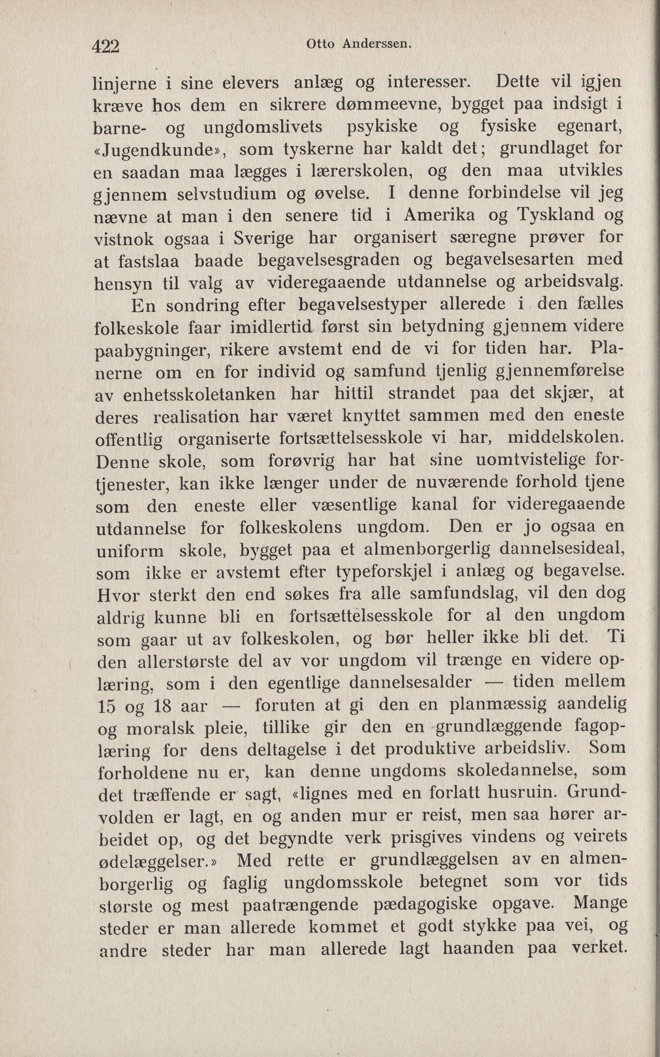 som gaar ut av folkeskolen, og bør heller ikke bli det. Ti